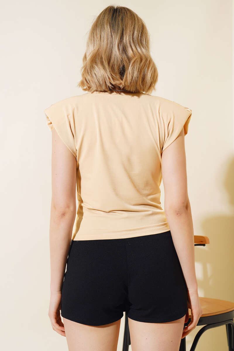 Sezonun şık parçası olan bluz modelimiz sizlerle beraber. V yaka bluz modelimiz kısa kollu modeldir. Omuzları vatkalıdır. Degaje yakadır. Şık tasarımıyla size çok yakışacak bluz modelimiz dolaplarınızda yerlerini beklemektedir.