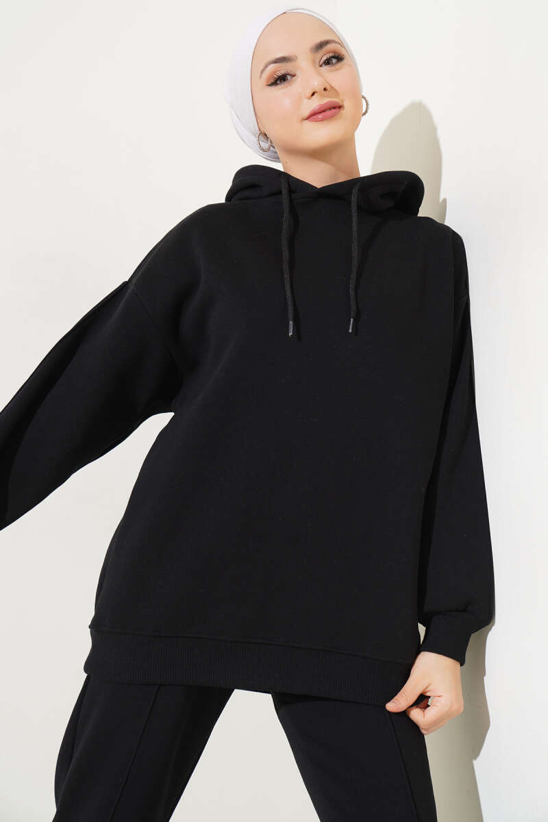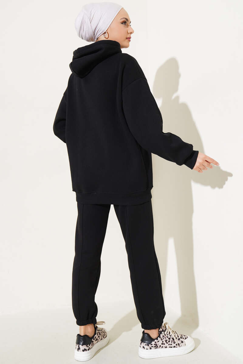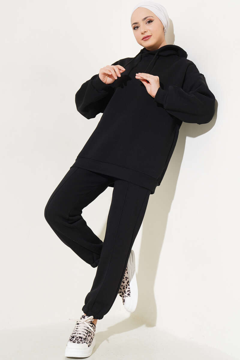 İkili takımımız rahatlığı ile ön plana çıkıyor... Takımımızın içi şardonlu modeldir. Tunik kapüşonludur ve kapüşonu bağcık detaylıdır. Pantolon çimalı model olup bilekleri büzgülüdür. İki adet cebi mevcuttur.