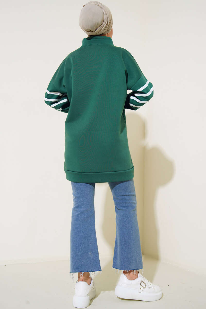 Şardonlu Şerit Çizgili Sweatshirt Zümrüt Yeşili