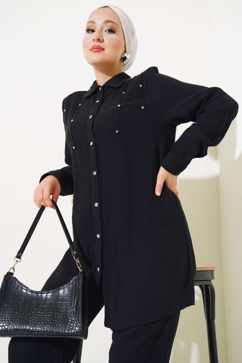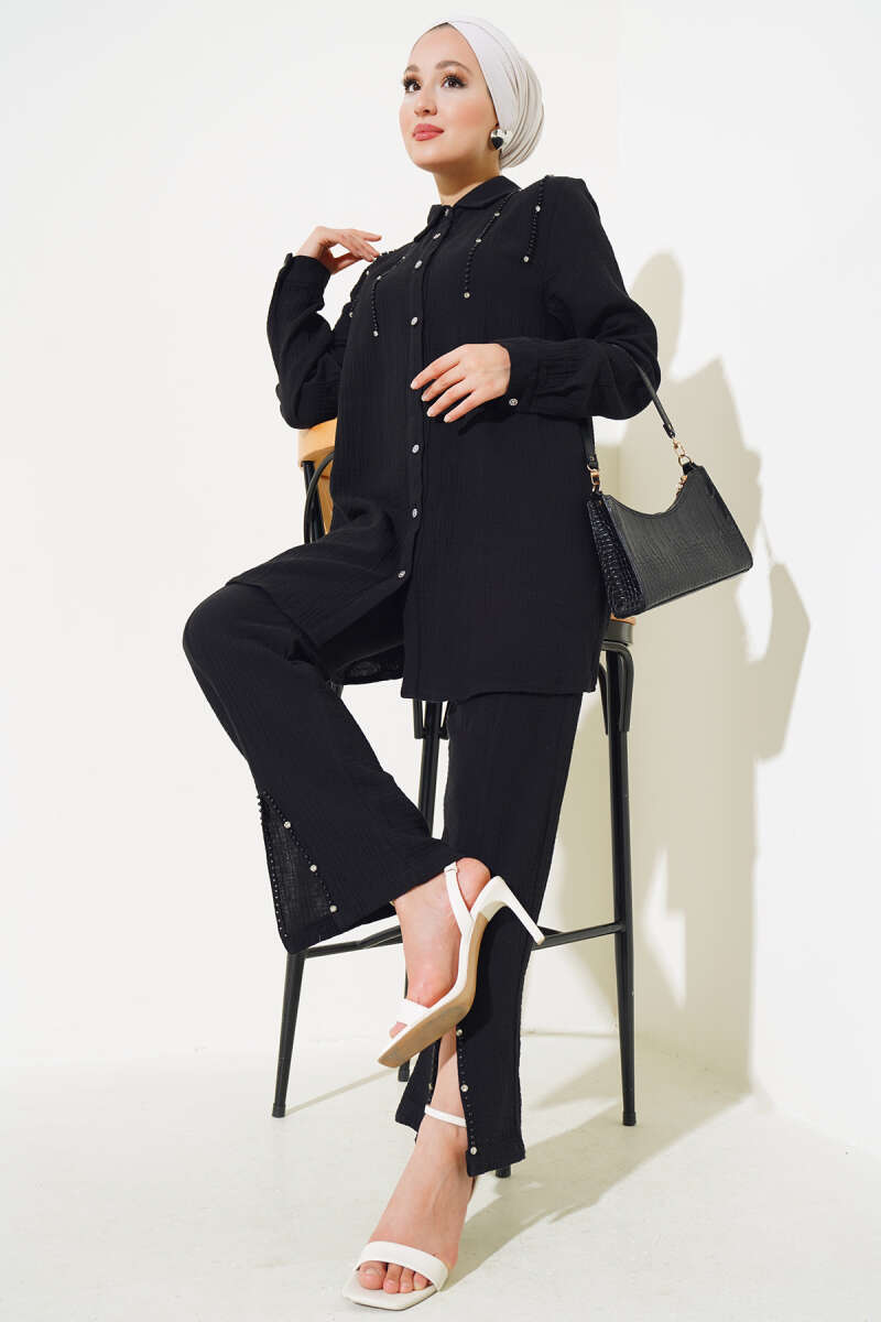 Sarkıt Taş Detaylı İkili Takım Siyah