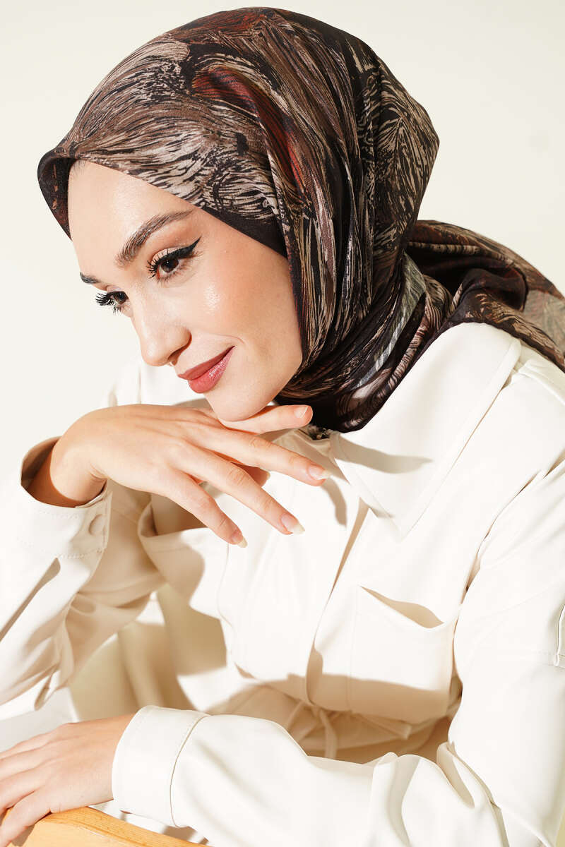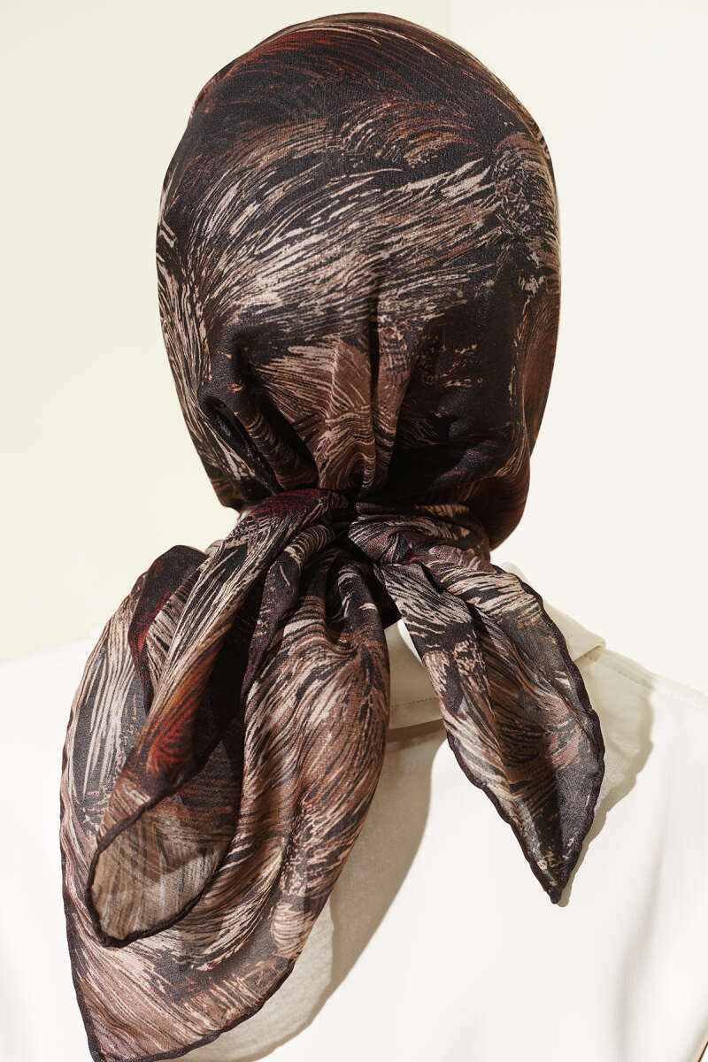 Retro Desenli Bambu Kraş Şal Soft Kahve