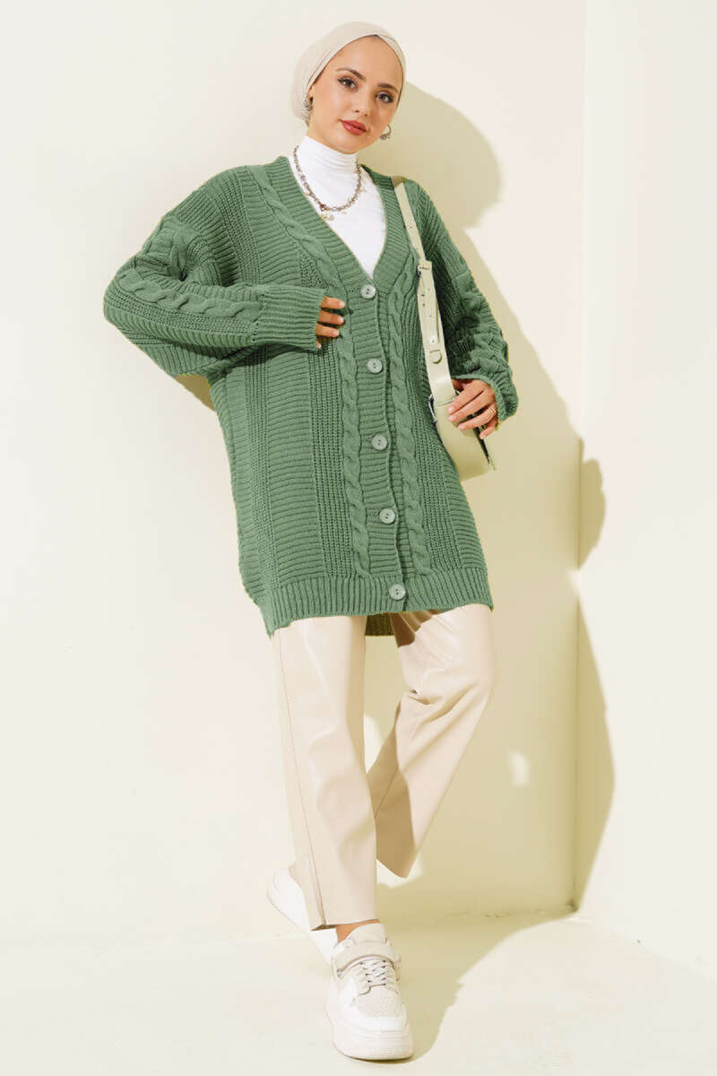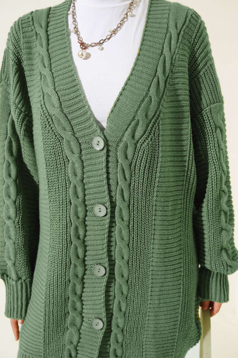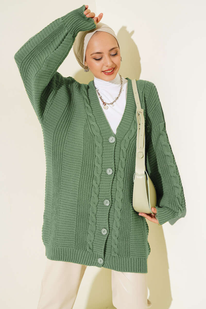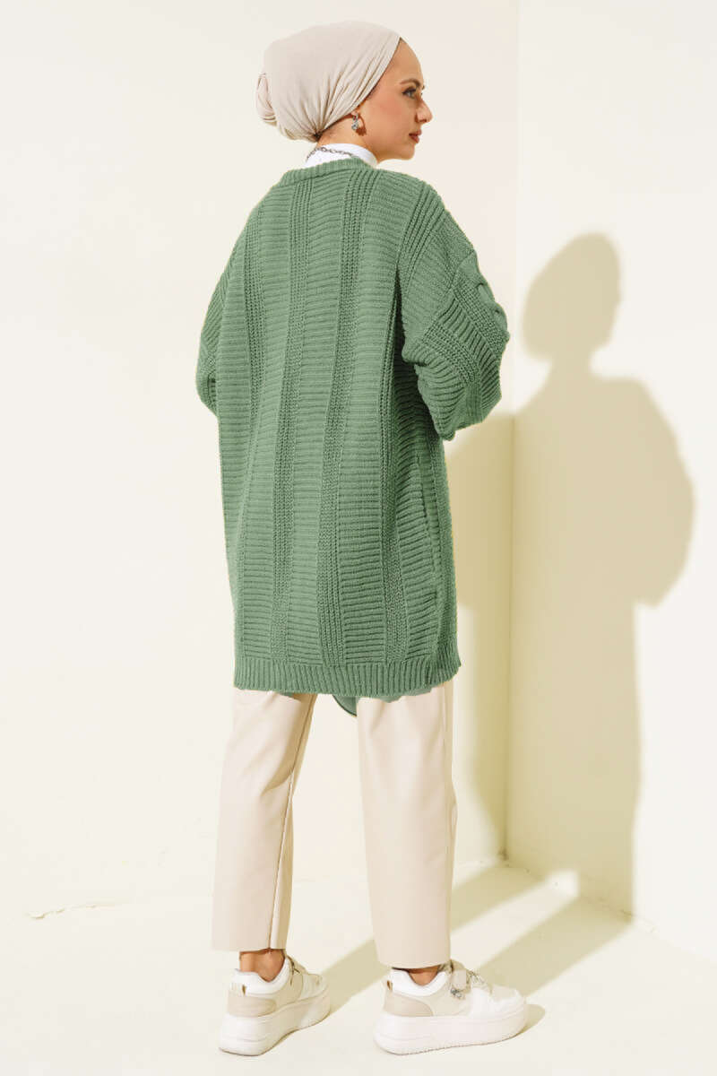 Sarmal Desen Detaylı Triko Hırka Yağ Yeşili