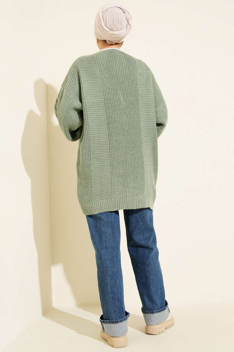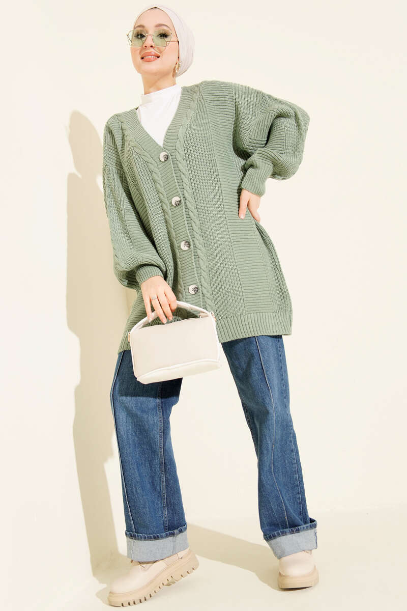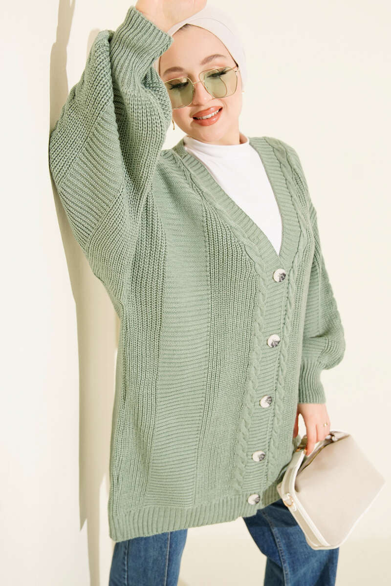Düğmeli Uzun Merserize Hırka Zümrüt