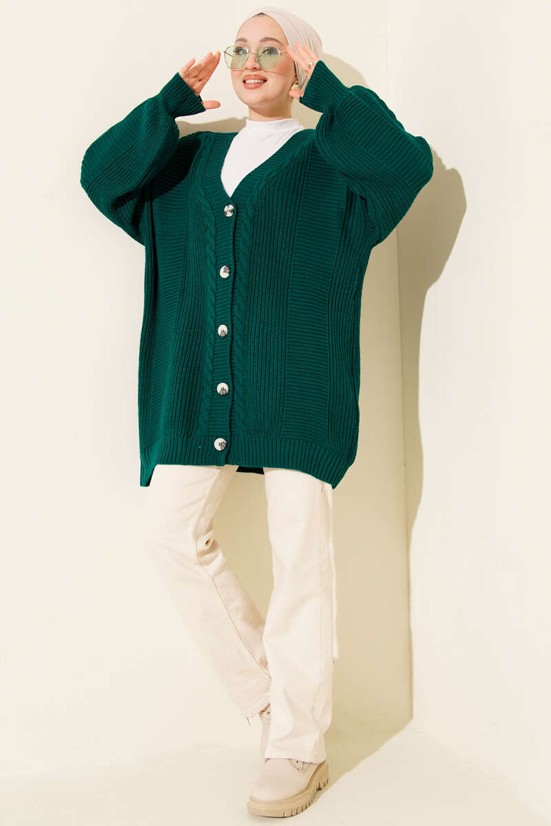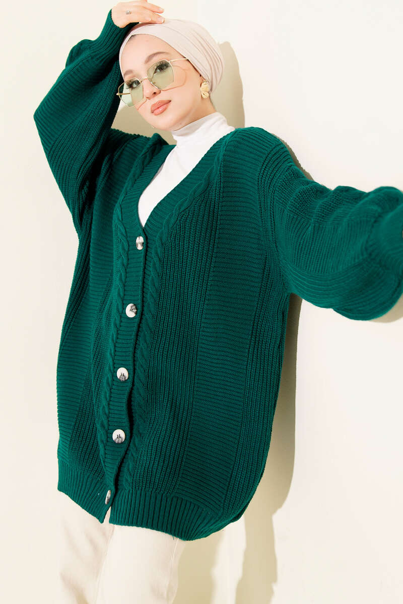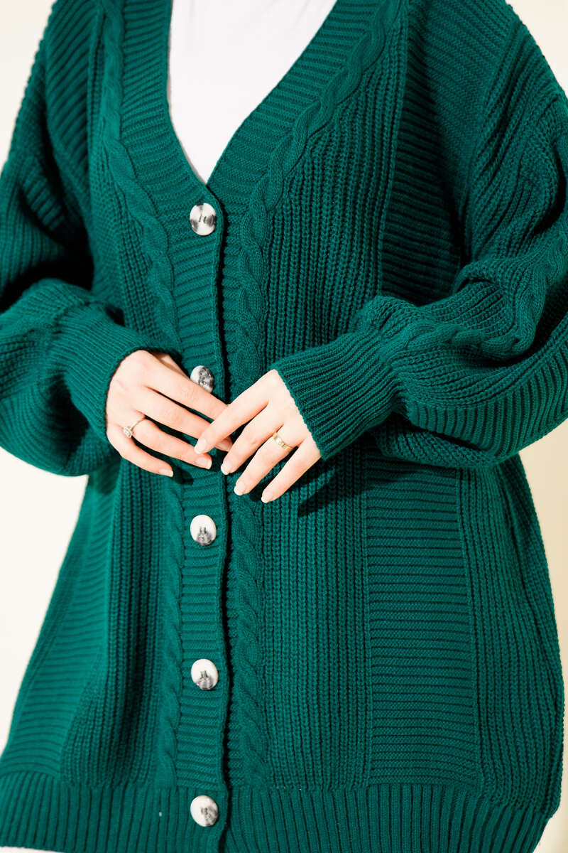 Atkılı Düğmeli Cepli Triko Hırka Vizon