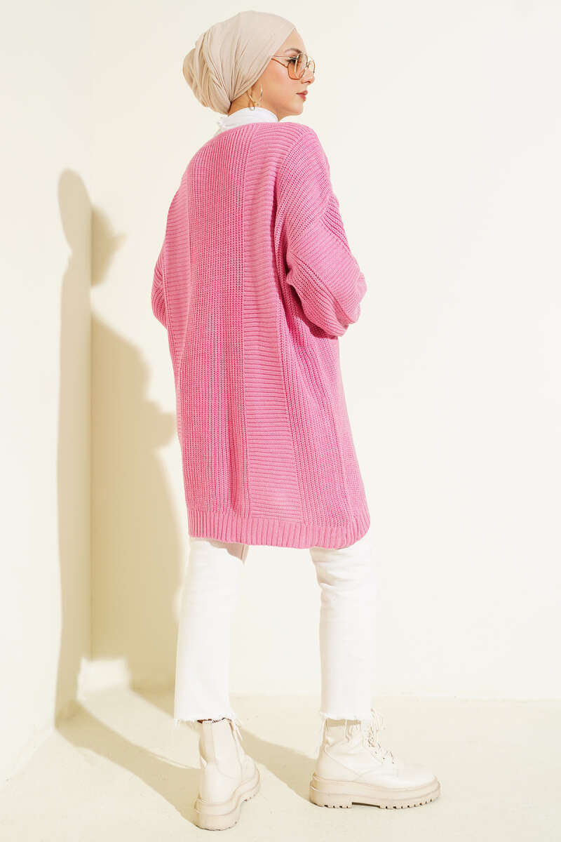 Düşük Omuz Cepli Triko Hırka Bordo