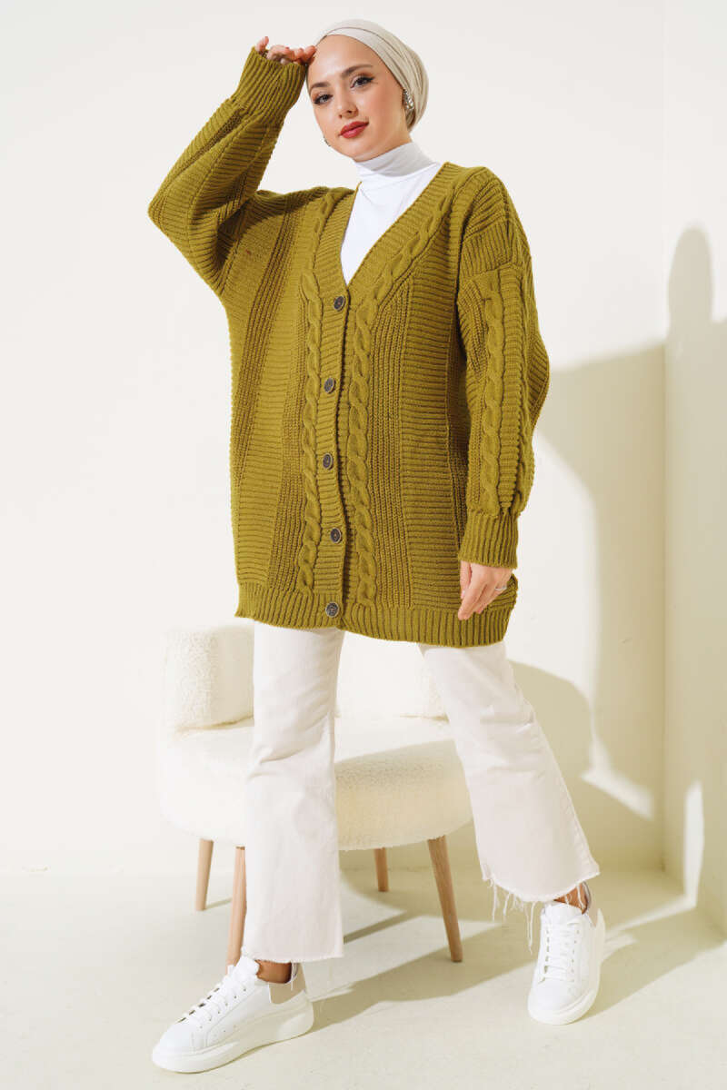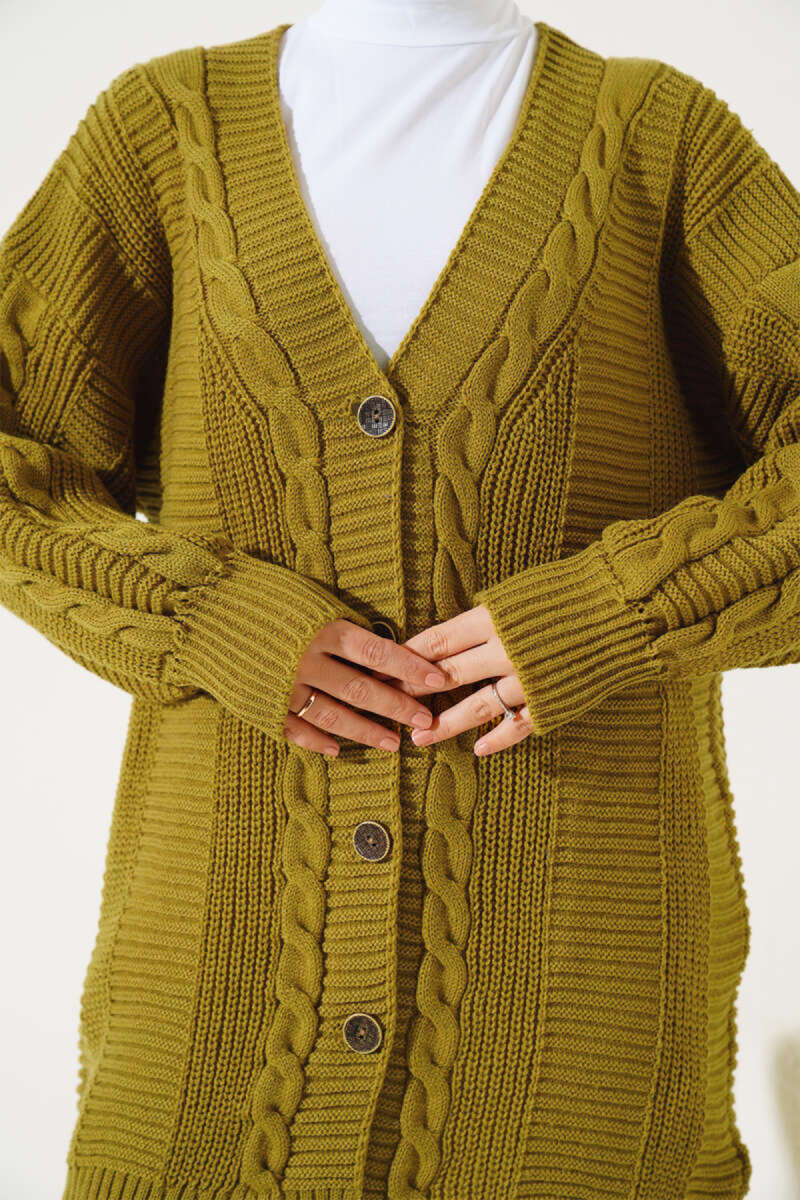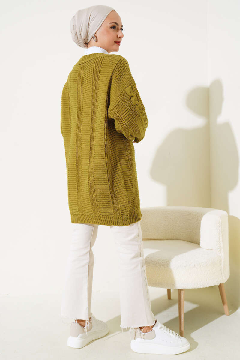 Sarmal Desen Detaylı Triko Hırka Çağla Yeşili
