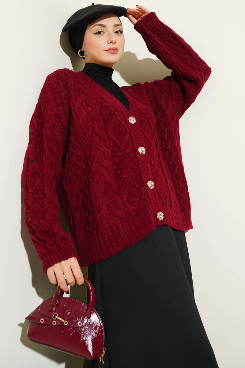 Düşük Omuz Düğmeli Triko Hırka Bej