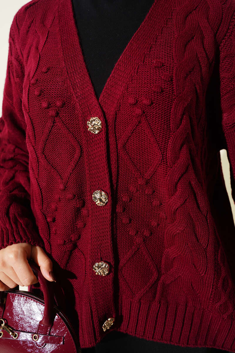 Düşük Omuz Düğmeli Triko Hırka Ekru