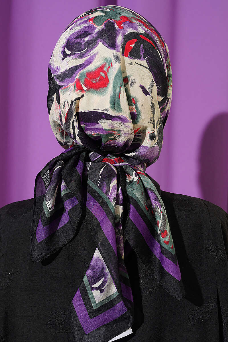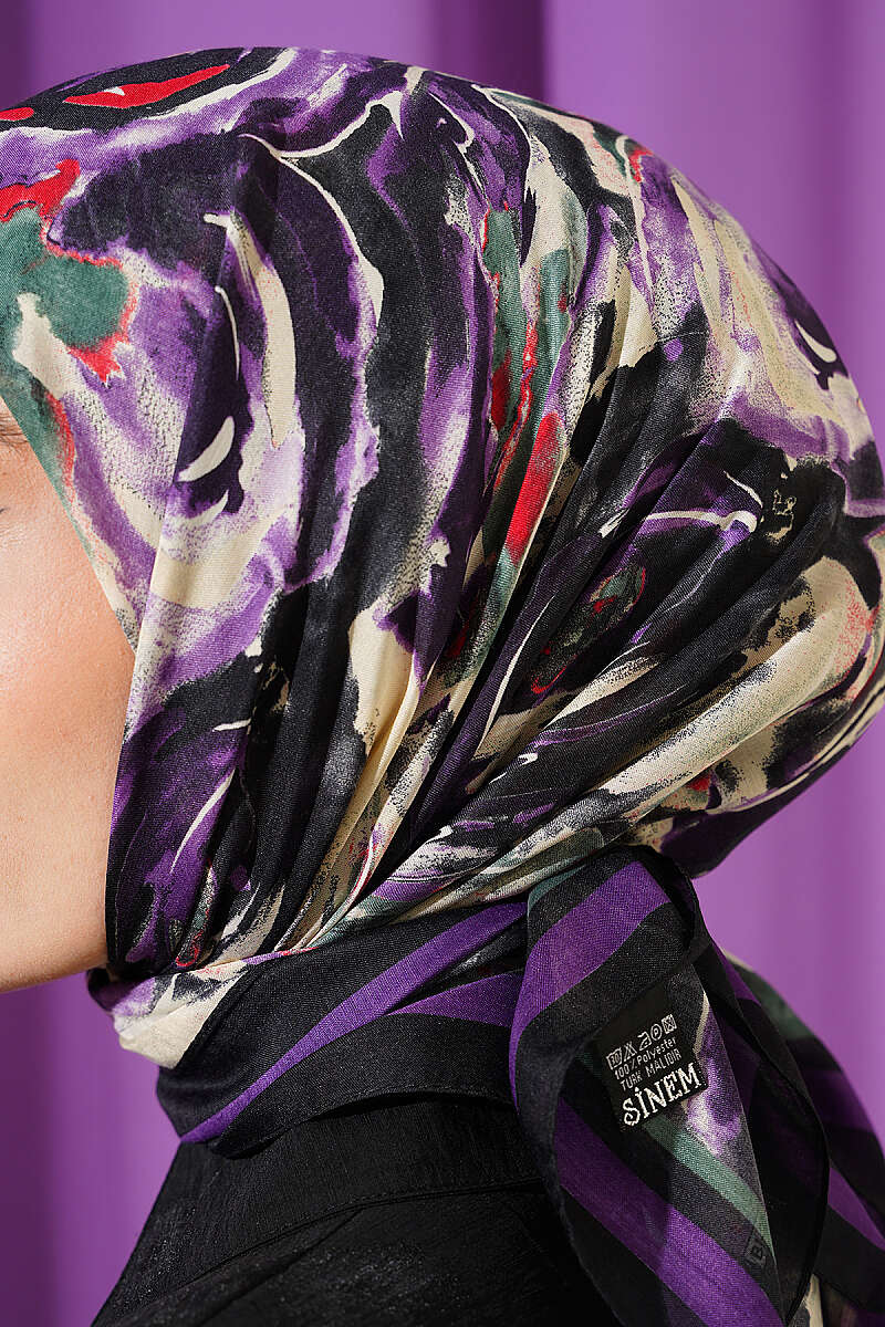 Sarmal Desen Elegance Eşarp Siyah Mor