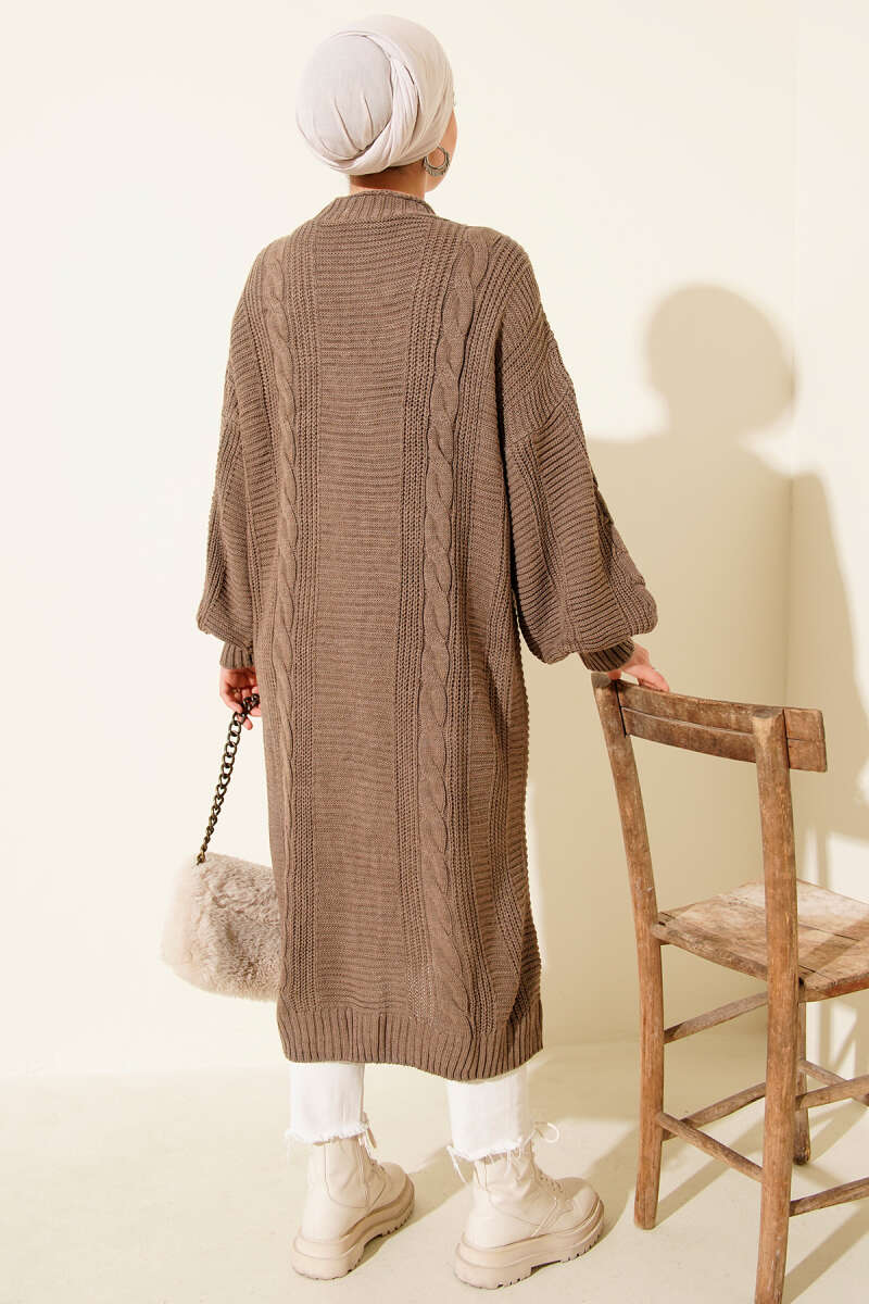 Sarmal Detaylı Düğmeli Uzun Triko Hırka Vizon