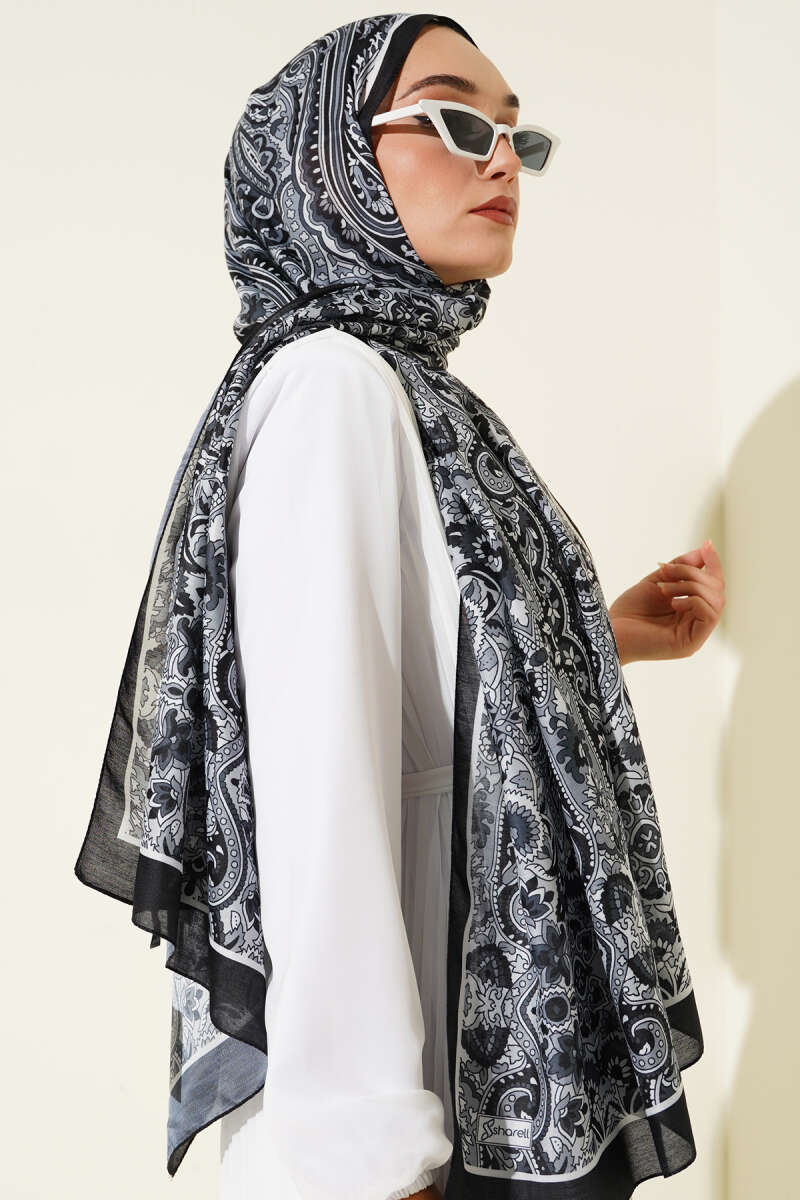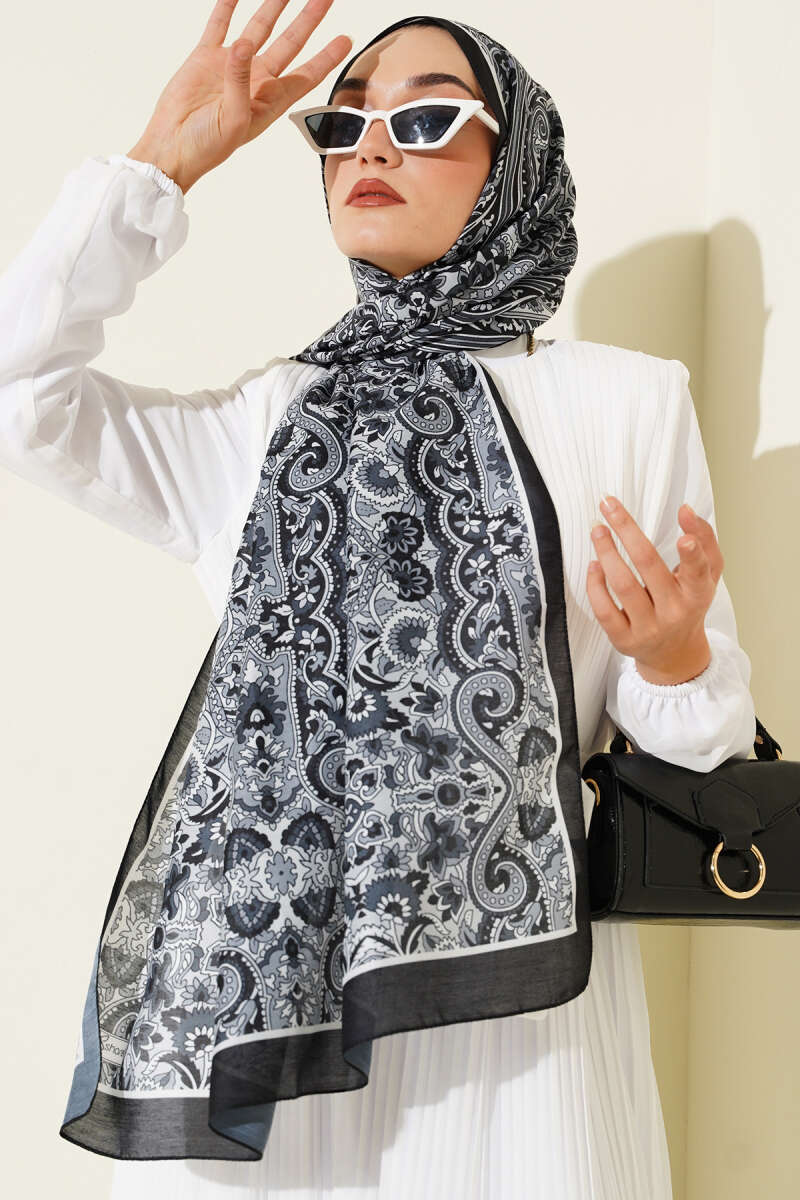 Kamuflaj Desenli Bambu Kraş Şal Siyah Taş -13