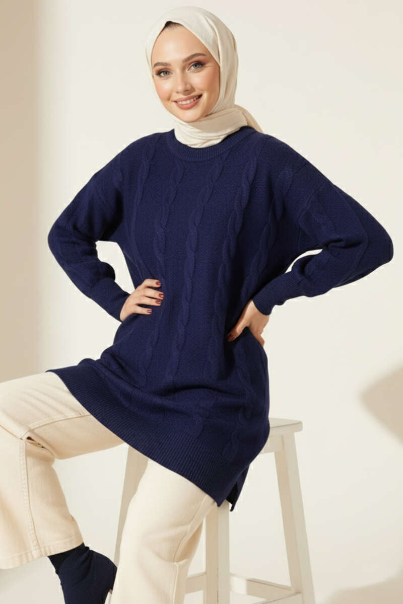 Sarmal Kabartmalı Yumoş Triko Tunik Taş