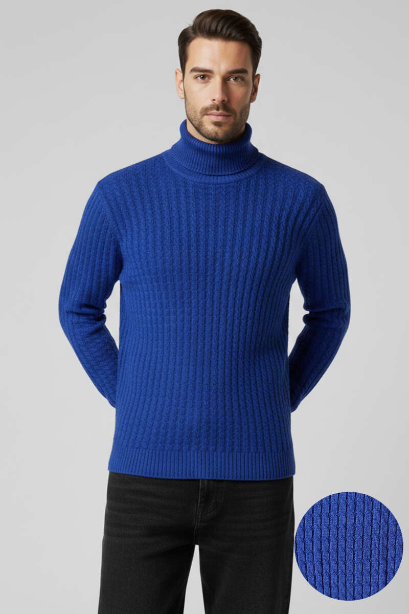 Sarmal Örgü Balıkçı Yaka Erkek Kazak Burgonya