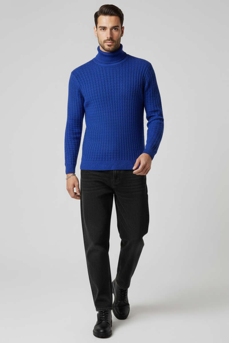 Yarım Balıkçı Basic Erkek Triko Kazak Lacivert
