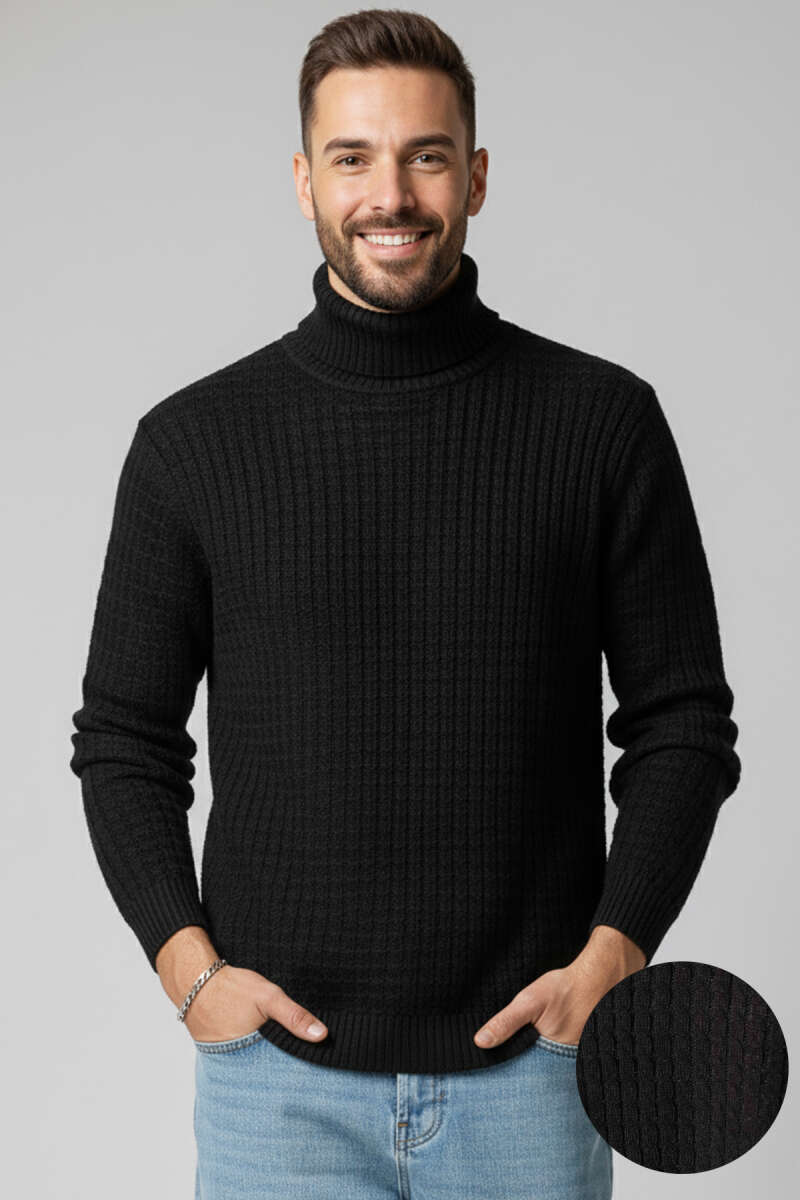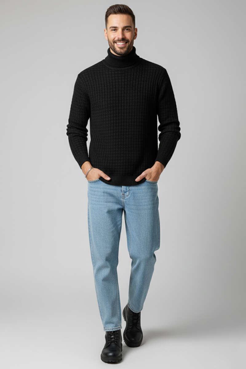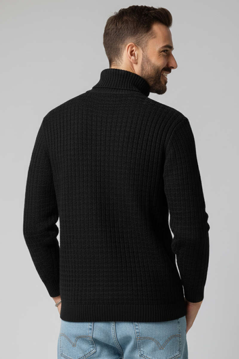 Yarım Balıkçı Basic Erkek Triko Kazak Siyah