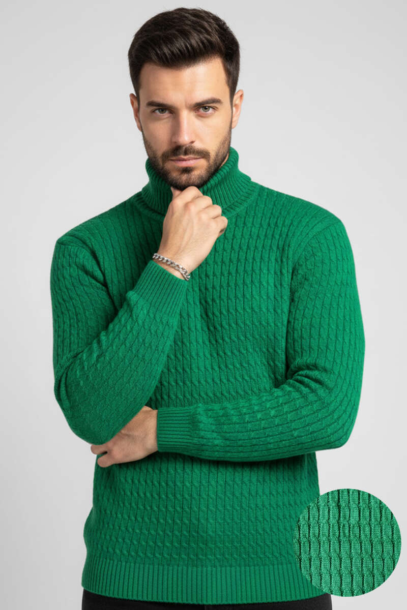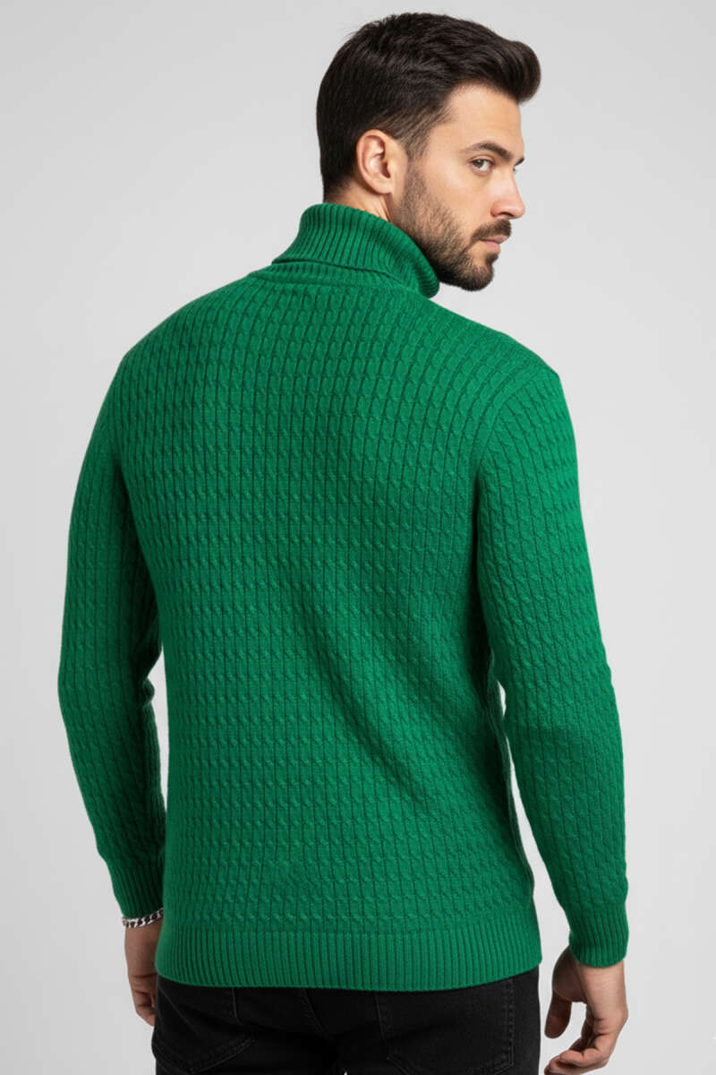 Sarmal Örgü Balıkçı Yaka Erkek Kazak Burgonya