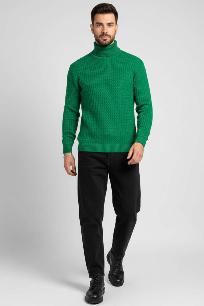 Sarmal Örgü Balıkçı Yaka Erkek Kazak Hardal