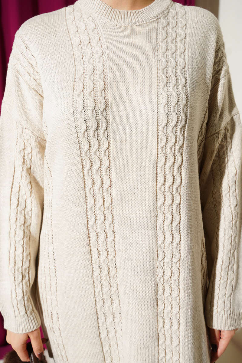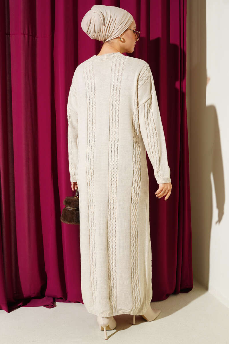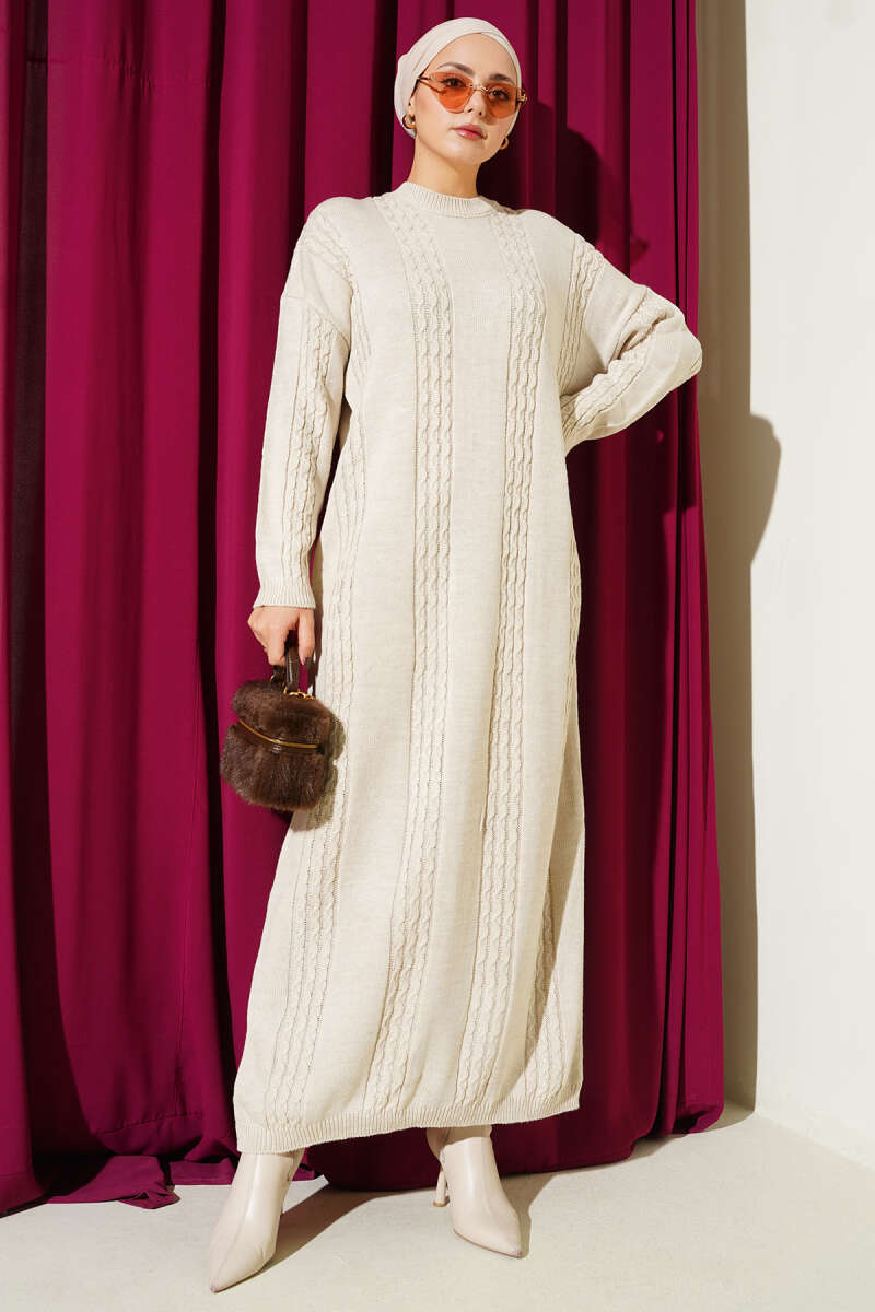 Sarmal Şeritli Triko Elbise Bej