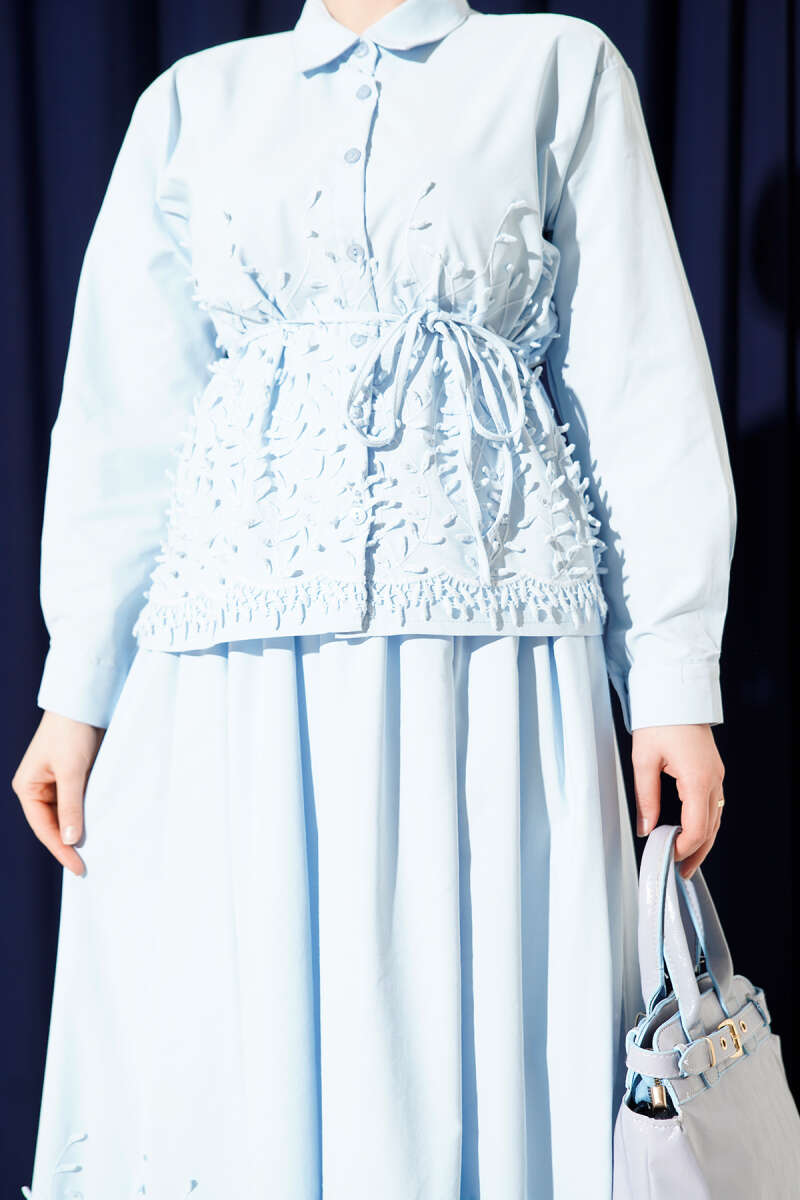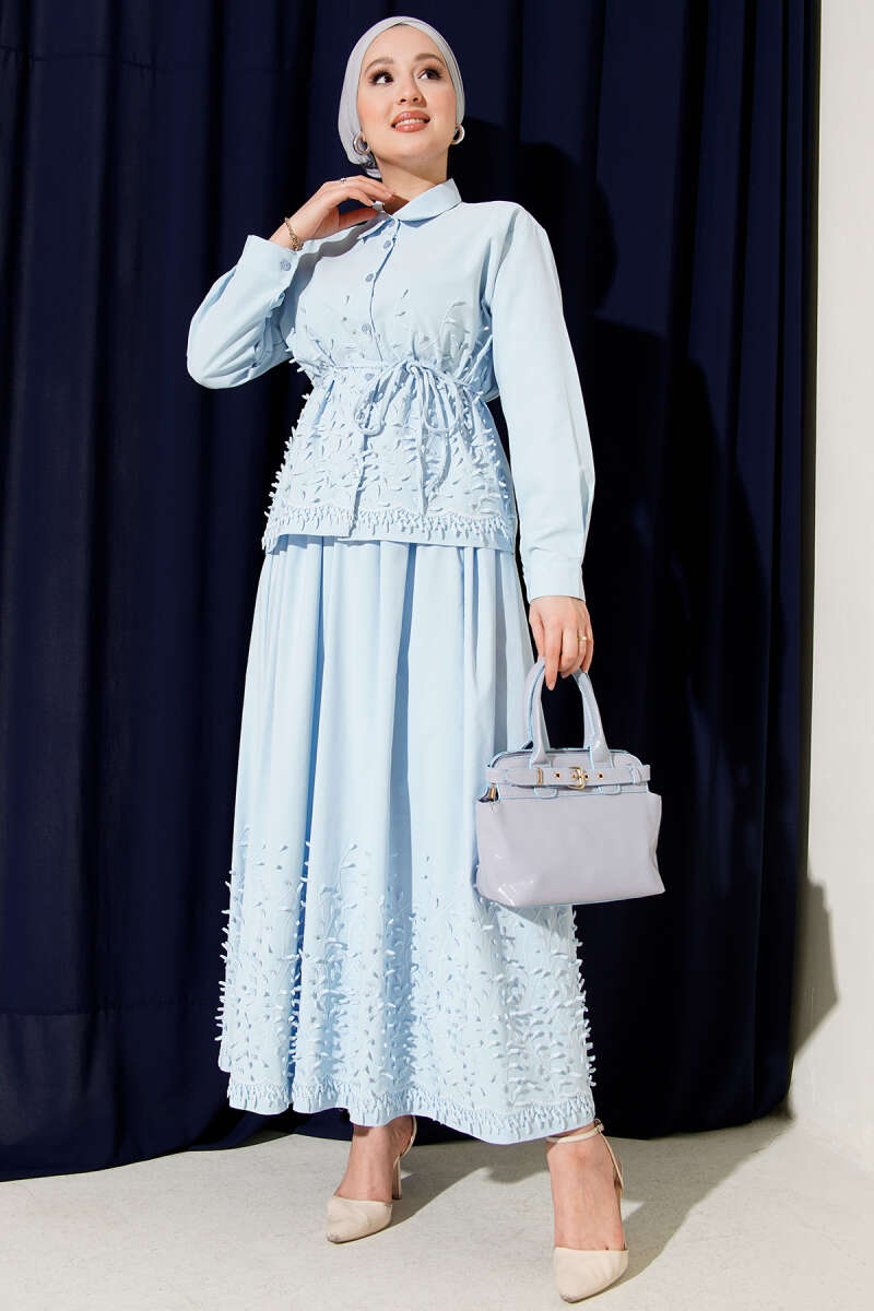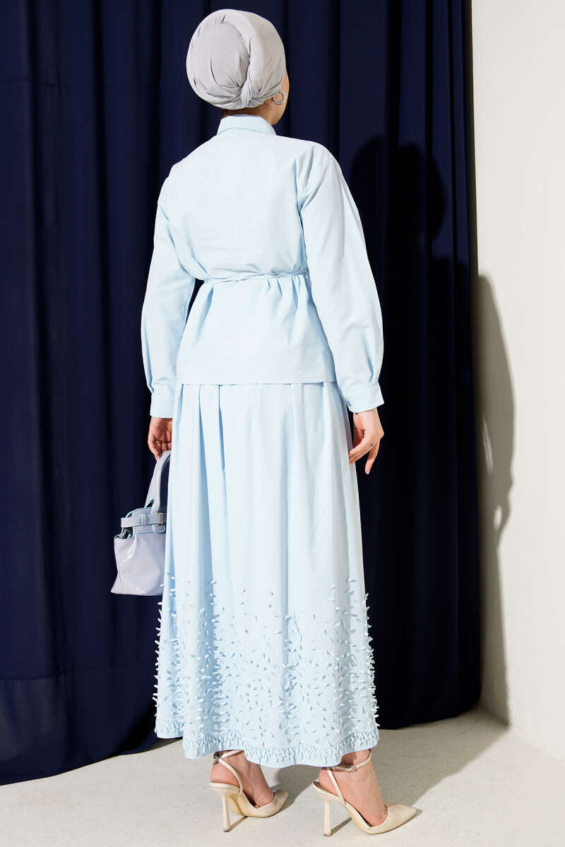Sarmaşık Kabartmalı Etekli İkili Takım Lacivert