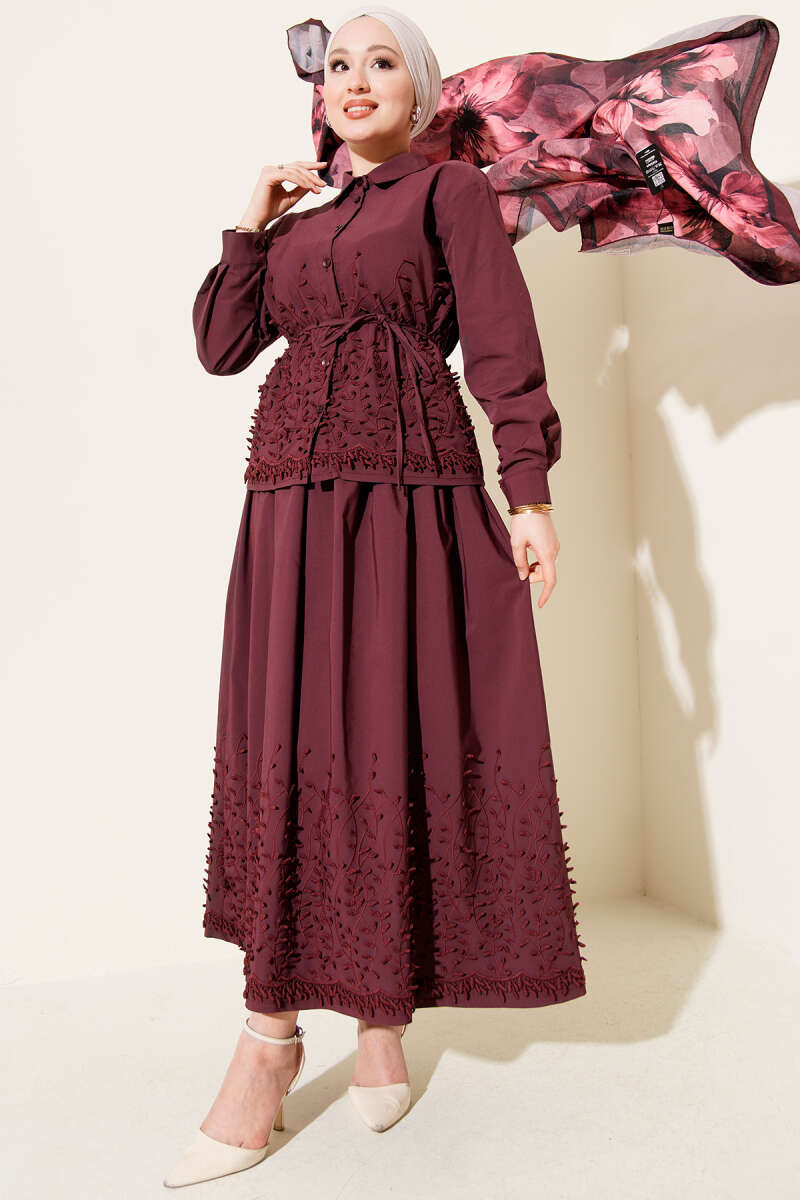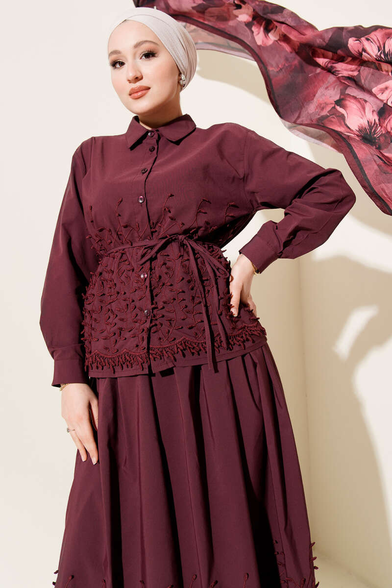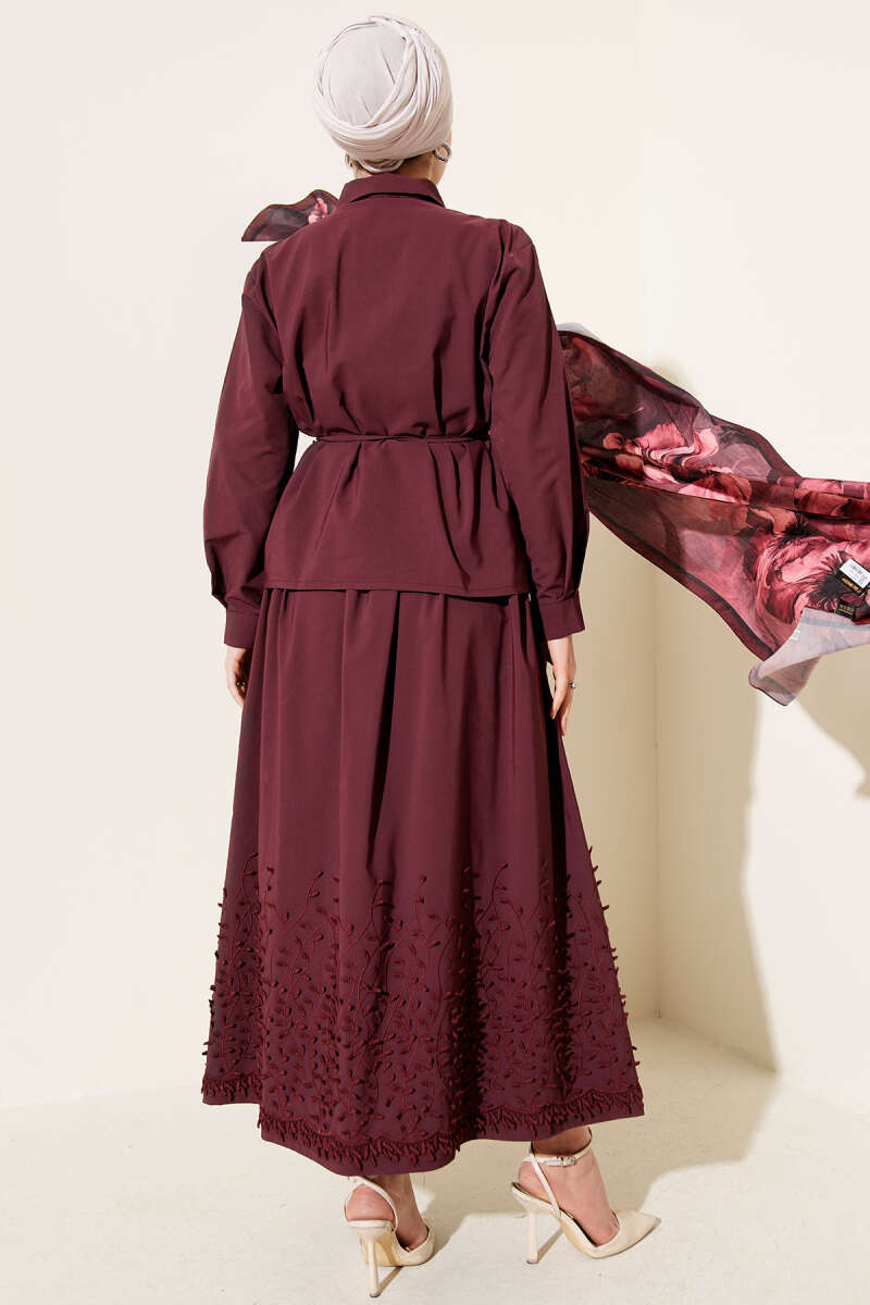 Loyşa Sim Detaylı Kapüşonlu İkili Takım Bordo