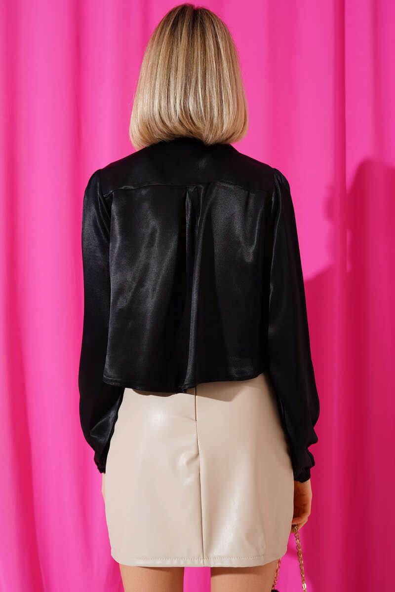 Mini Taşlı Kayık Yaka Bluz Siyah