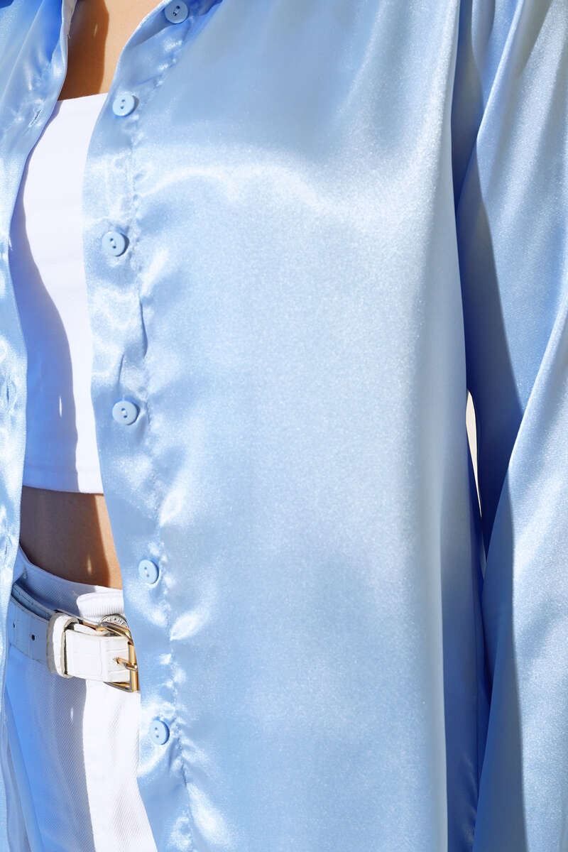 Yeni sezon saten gömlek modelimiz favorilerinizin arasına girecek. Boydan düğmeli modeldir aynı zamanda kol bilekleri de düğmelidir. Saten kumaş olan gömleğimiz kombinlerinizin yıldız parçası olacak.
