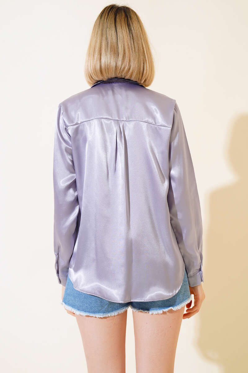 Yeni sezon saten gömlek modelimiz favorilerinizin arasına girecek. Boydan düğmeli modeldir aynı zamanda kol bilekleri de düğmelidir. Saten kumaş olan gömleğimiz kombinlerinizin yıldız parçası olacak.