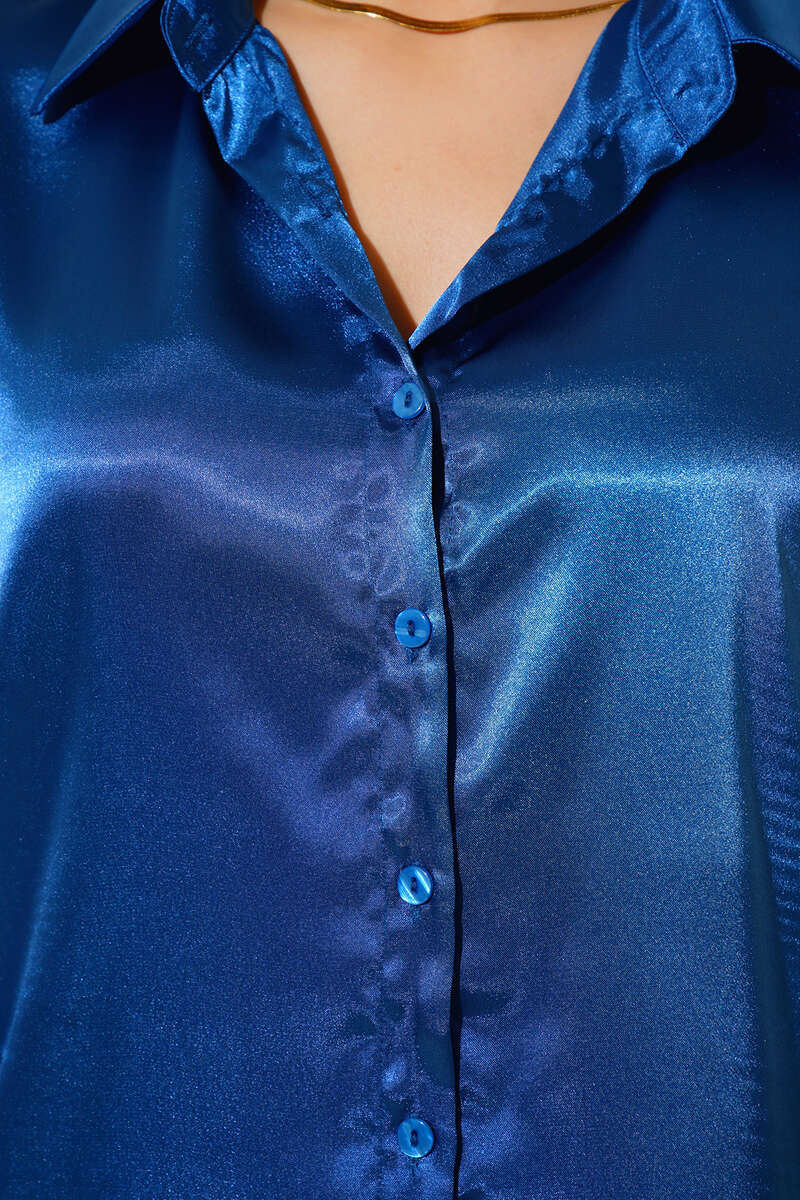 Yeni sezon saten gömlek modelimiz favorilerinizin arasına girecek. Boydan düğmeli modeldir aynı zamanda kol bilekleri de düğmelidir. Saten kumaş olan gömleğimiz kombinlerinizin yıldız parçası olacak.