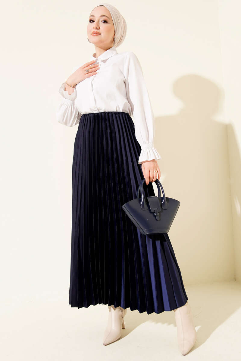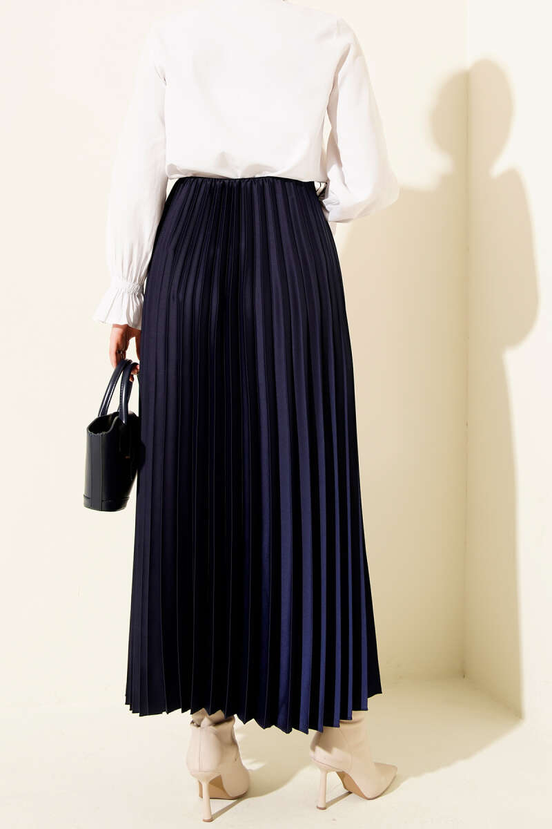 Yan İp Kuşaklı Scuba Etek Lacivert