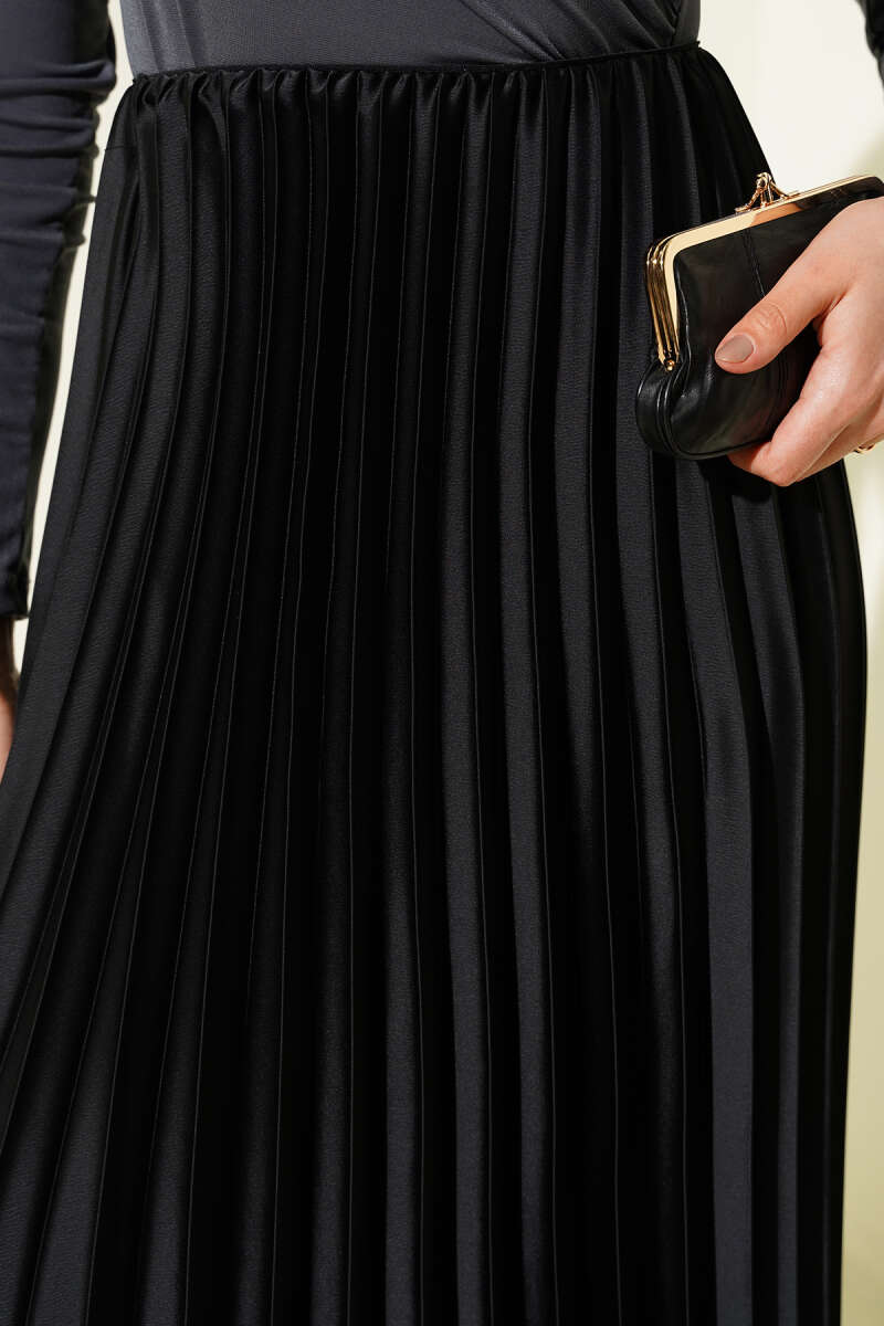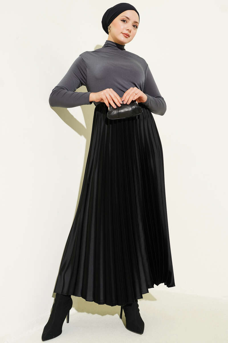 Saten Görünümlü Pileli Etek Bordo