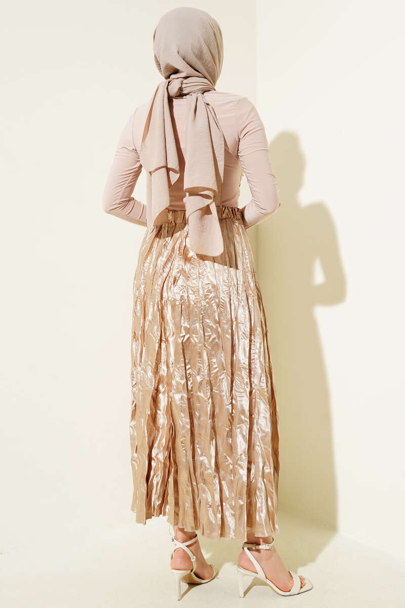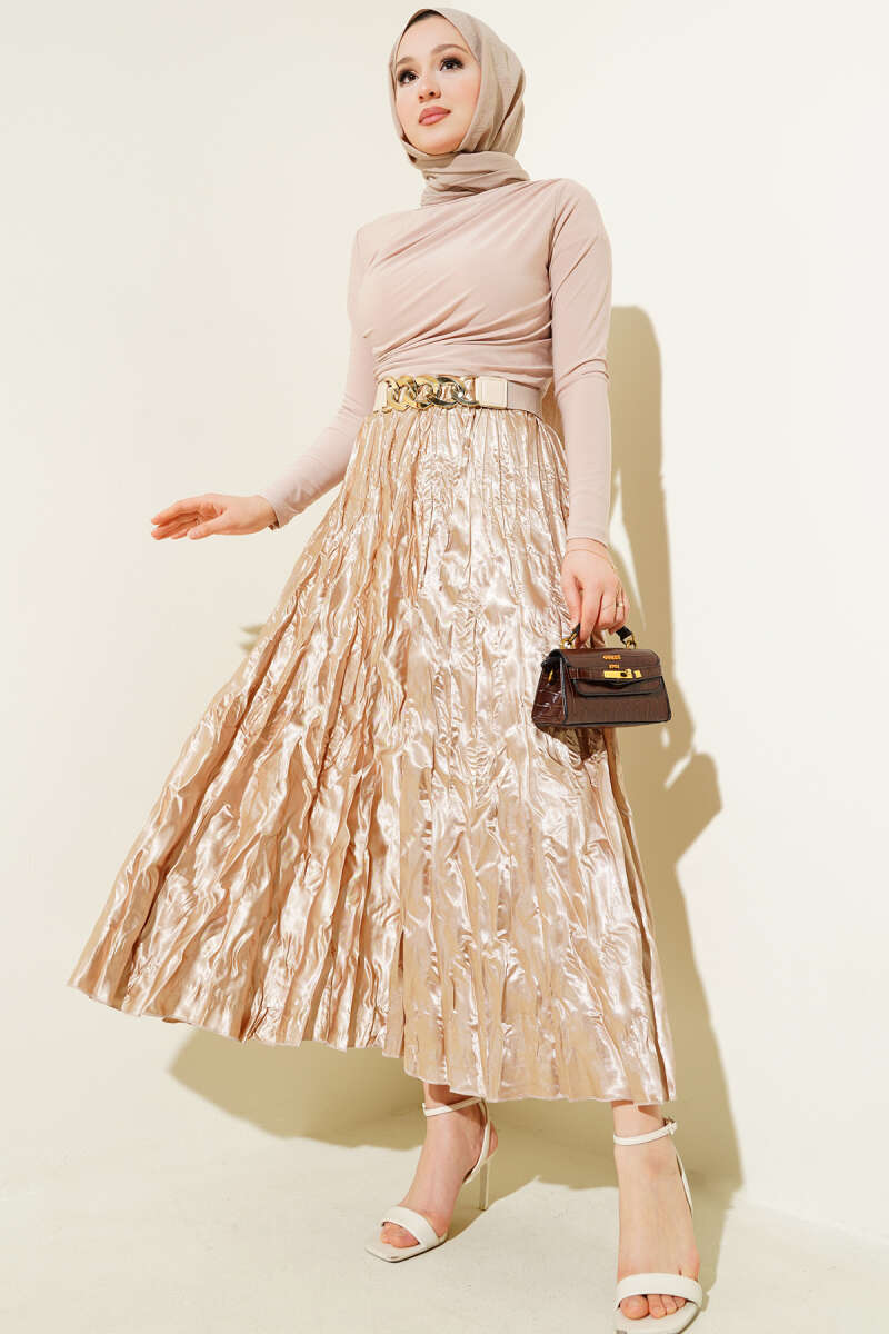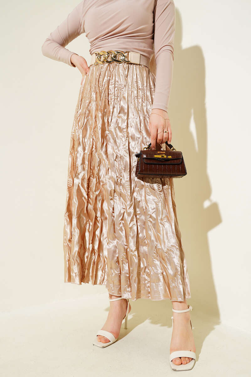 Loyşa Bel Lastikli Kemerli Etek Bej
