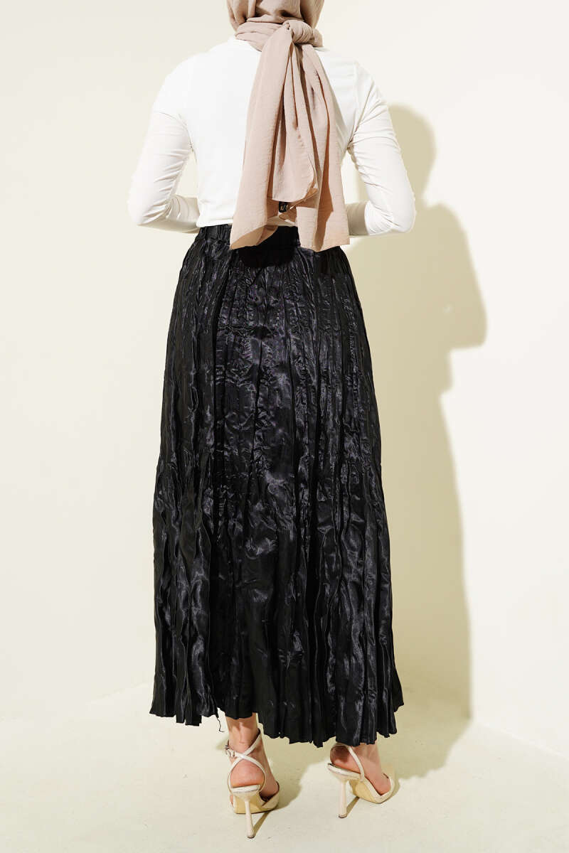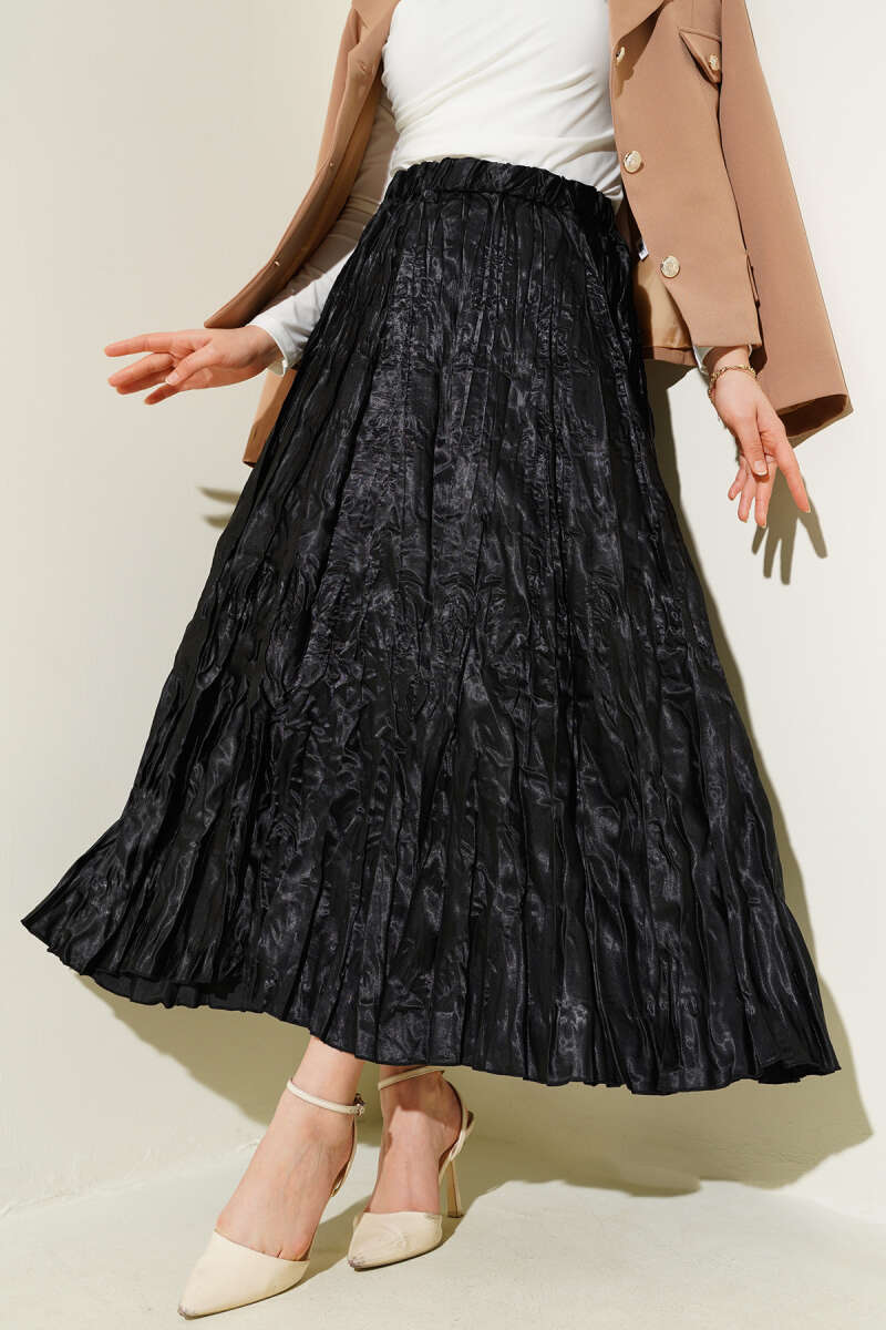 Loyşa Bel Lastikli Kemerli Etek Siyah
