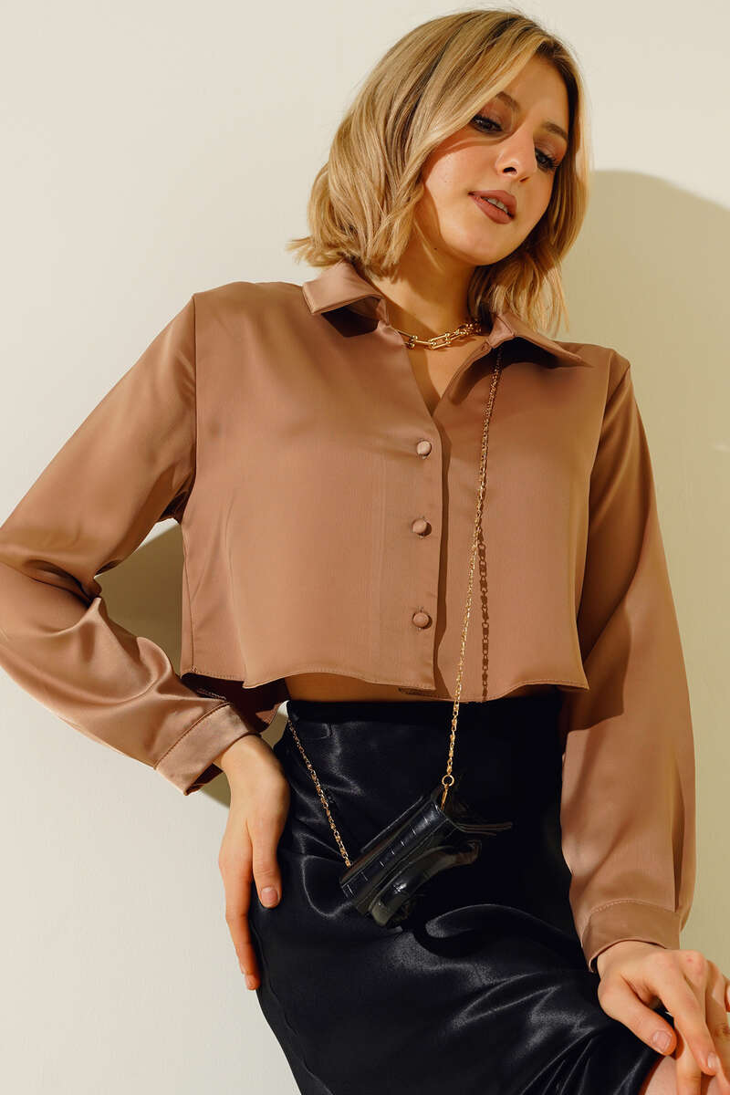 Yeni sezon saten gömleğimiz şık duruşuyla sizleri etkisi altında bırakacak. Gömleğimiz kısa modeldir. Klasik yakadır. Göğüs dekolteli olan gömleğimizin bilekleri düğmelidir. Duruşuna hayran kalacağınız gömleğimiz dolaplarınızda yerlerini beklemekte.