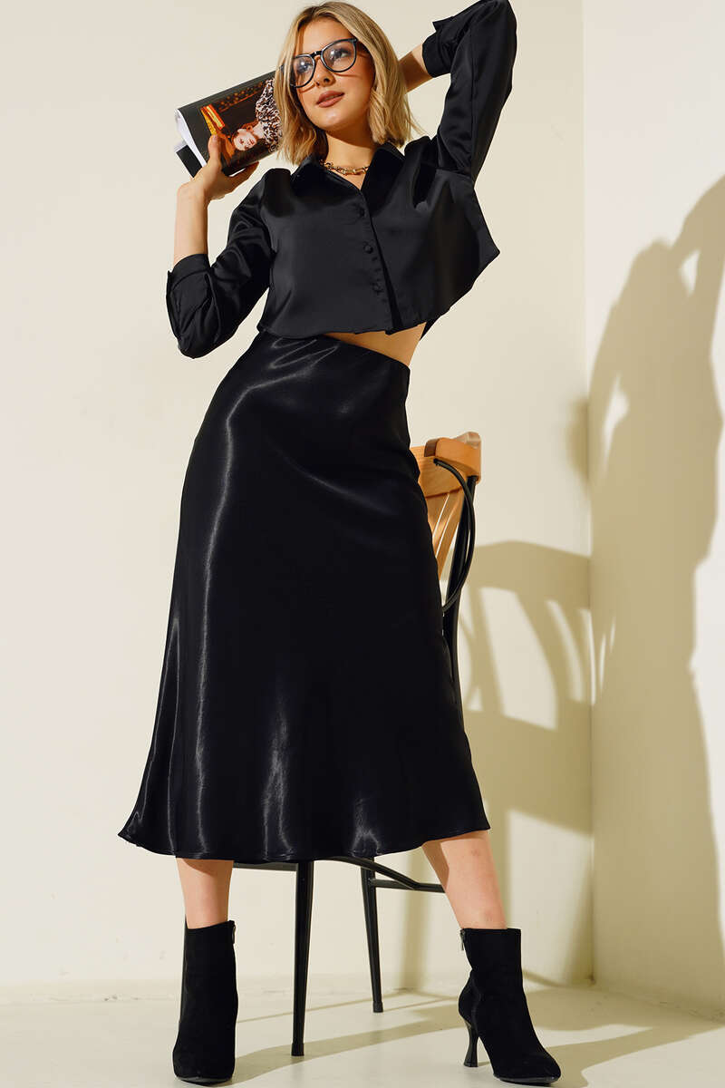 Yeni sezon saten gömleğimiz şık duruşuyla sizleri etkisi altında bırakacak. Gömleğimiz kısa modeldir. Klasik yakadır. Göğüs dekolteli olan gömleğimizin bilekleri düğmelidir. Duruşuna hayran kalacağınız gömleğimiz dolaplarınızda yerlerini beklemekte.