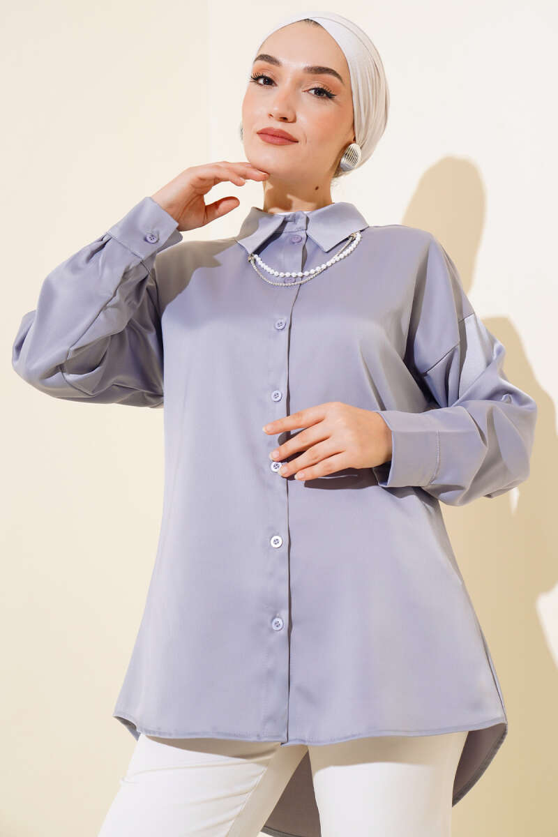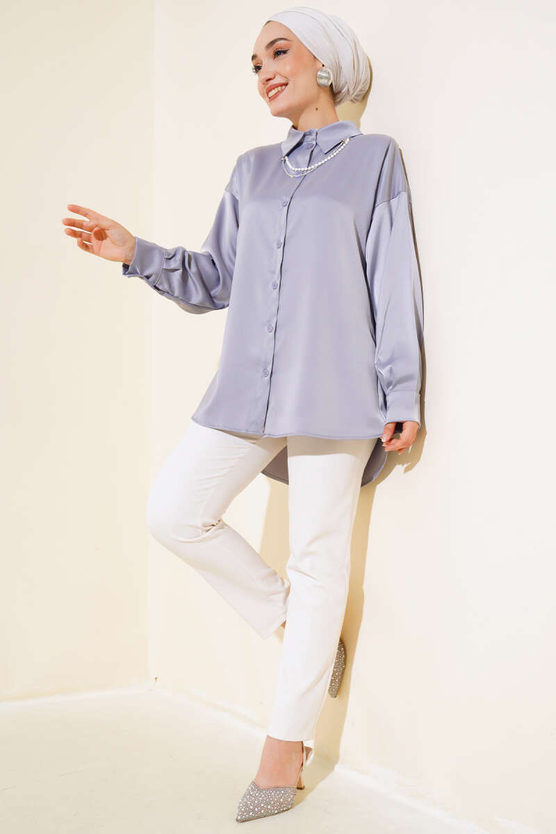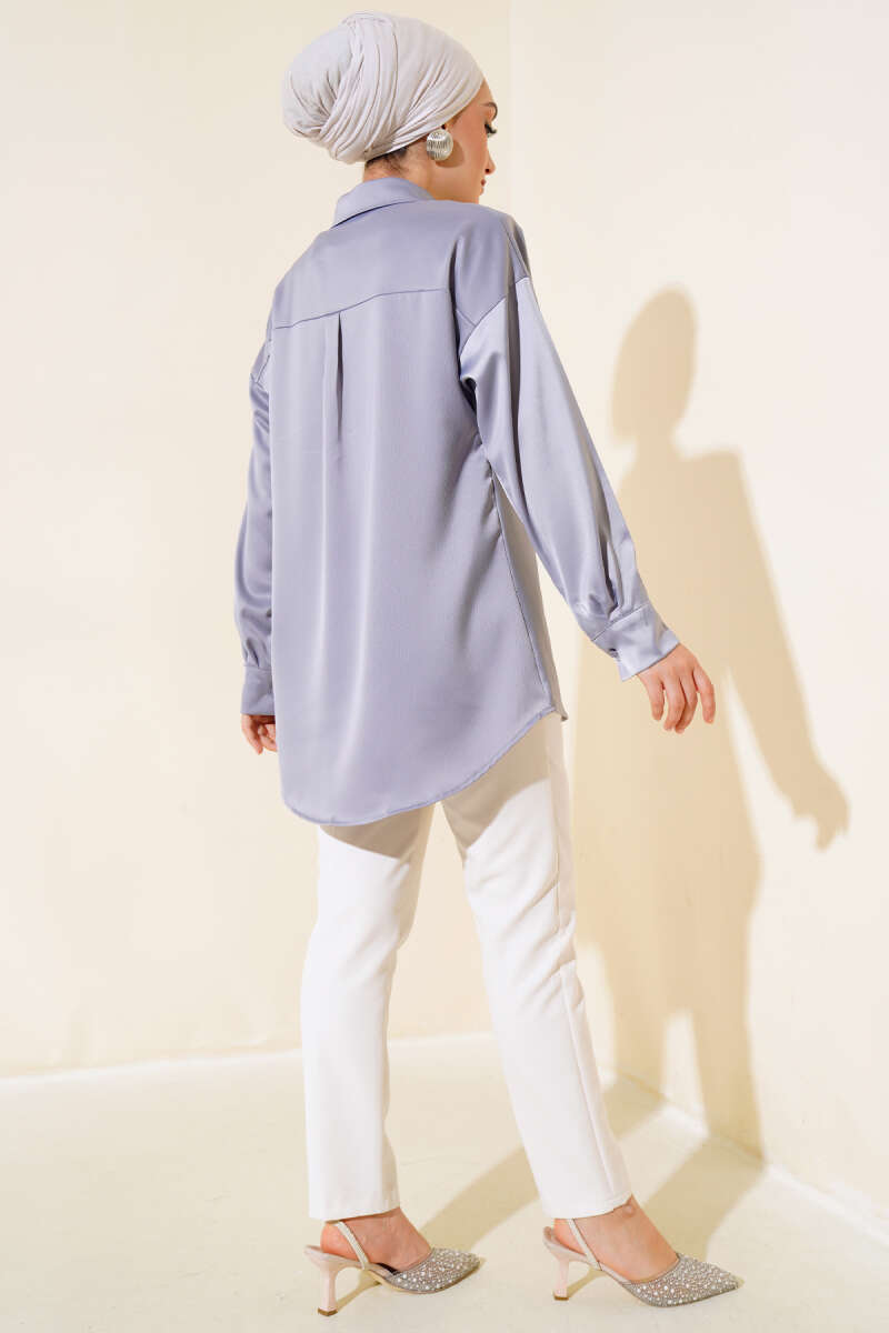 Saten Salaş Gömlek Gri