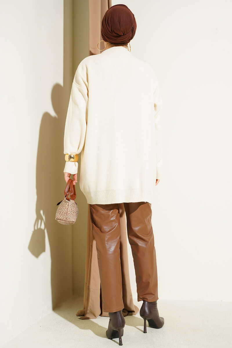 Omuz Taş Detaylı İp Kuşaklı Gömlek Bej
