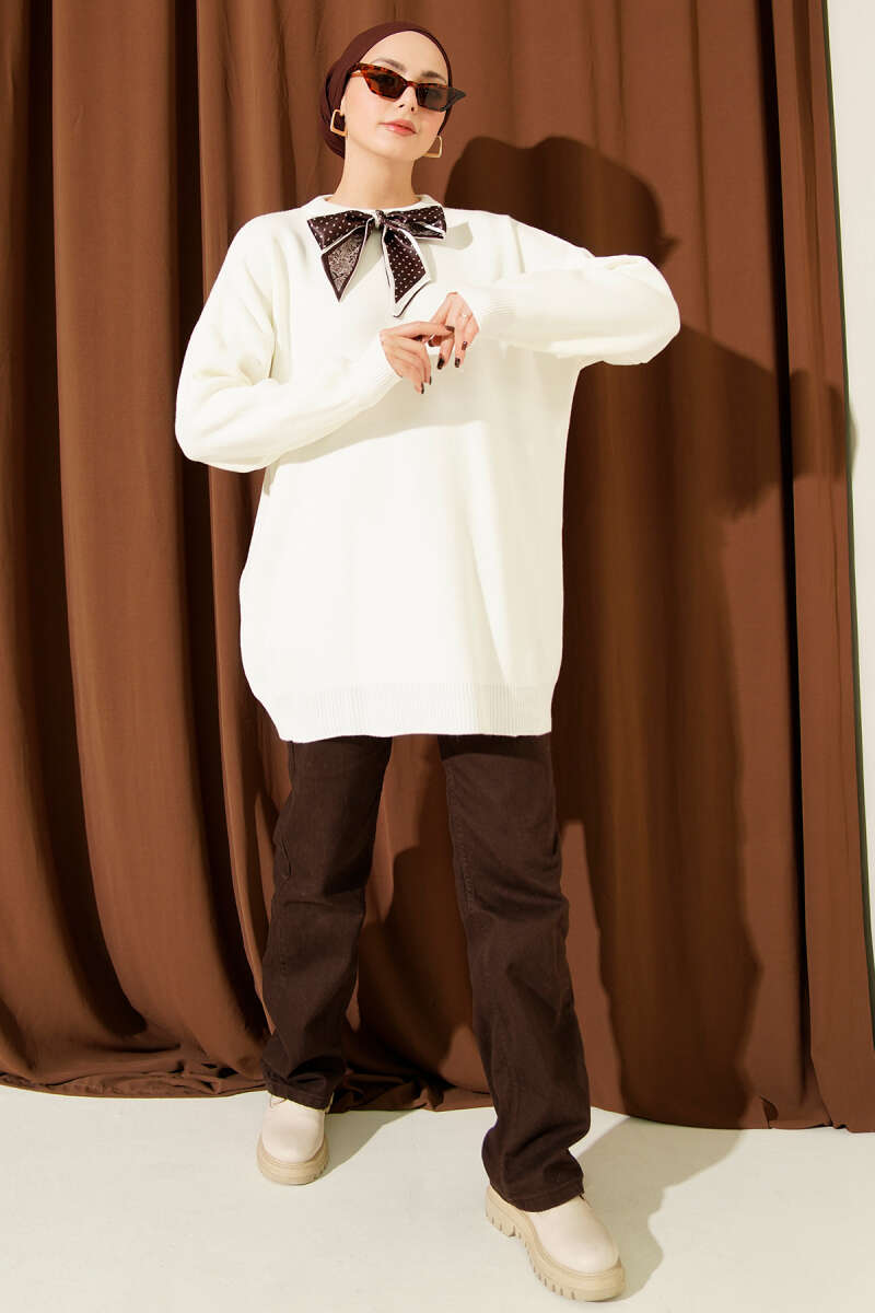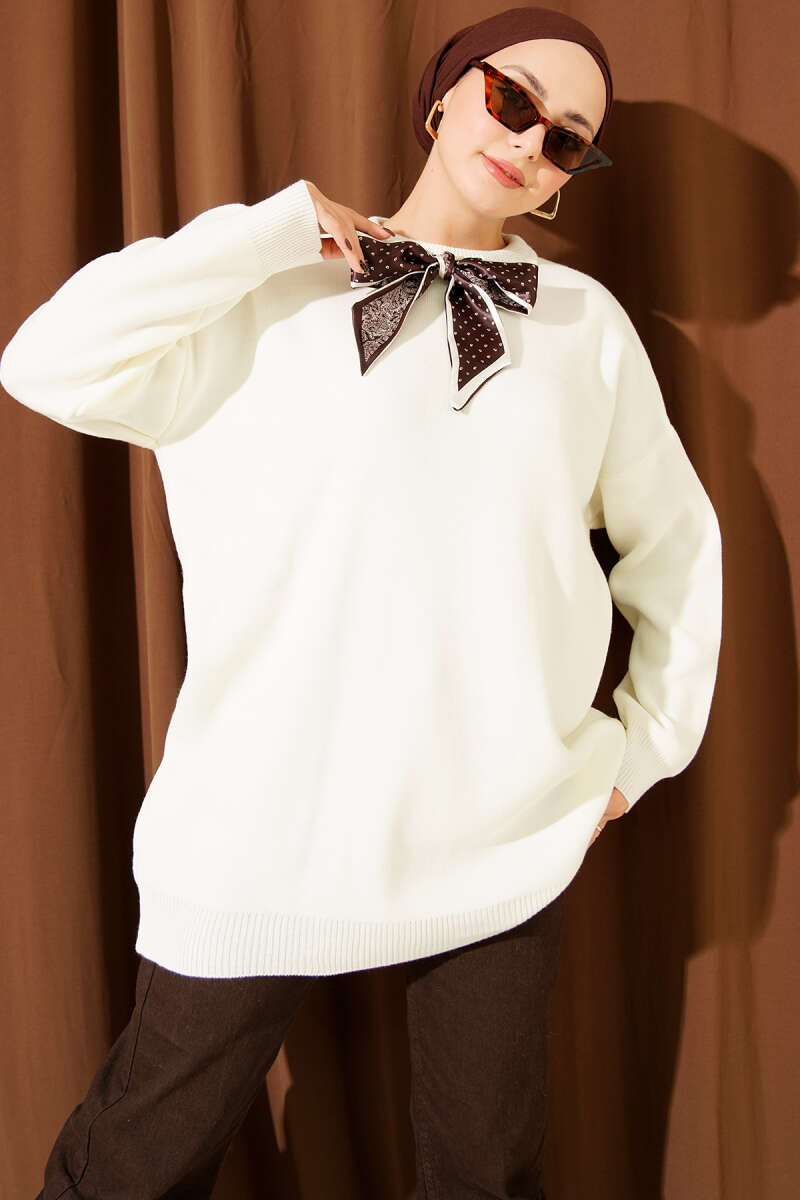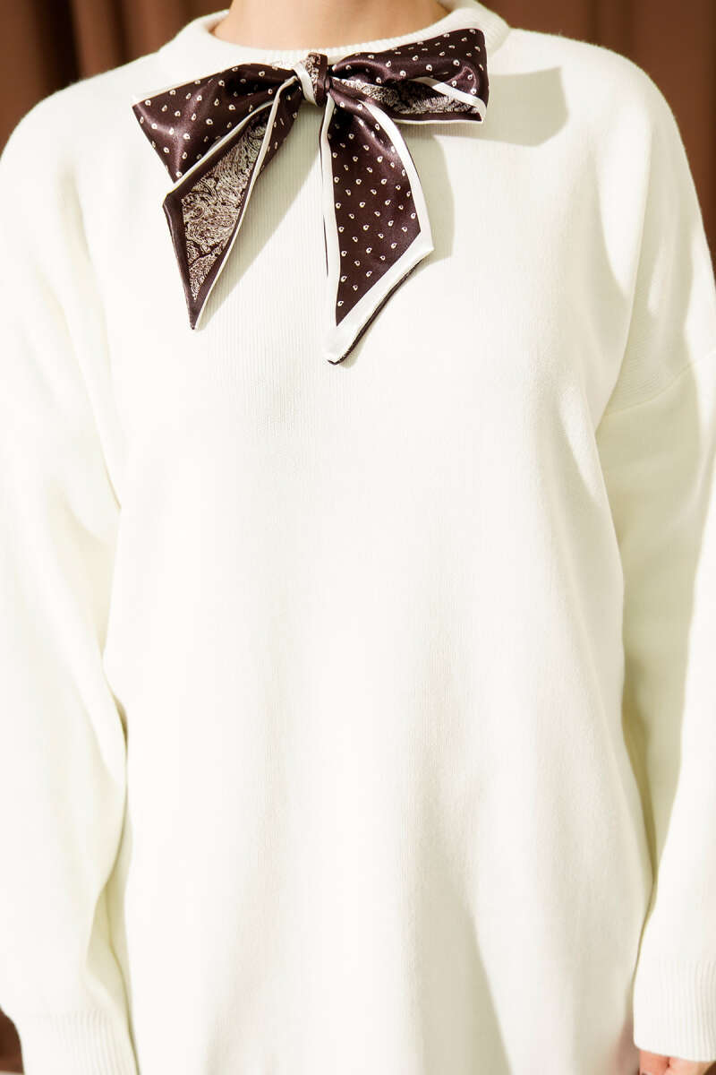 Fularlı İp Bağcık Detaylı Elbise Sütlü Kahve