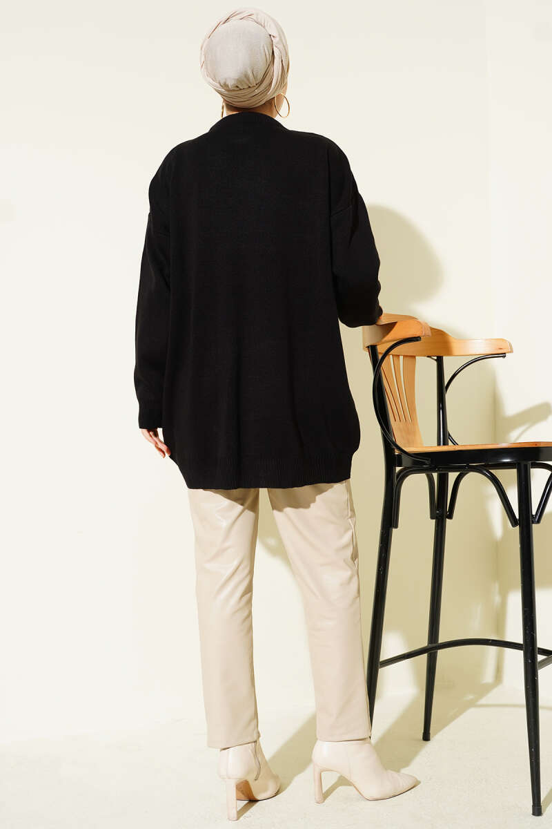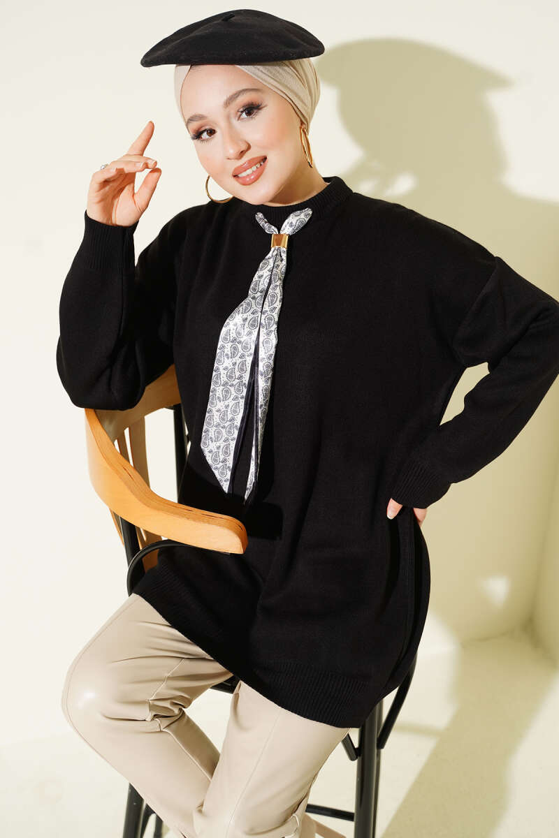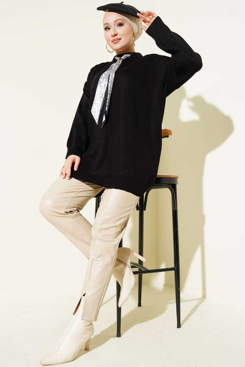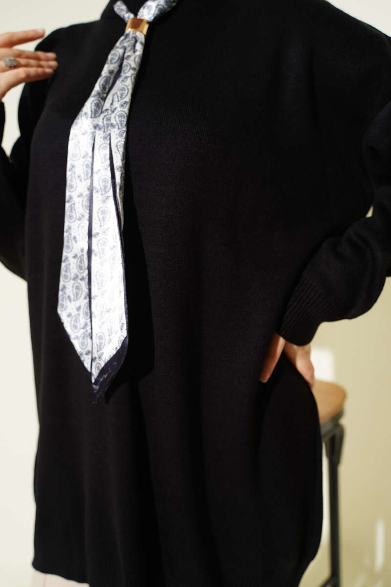 Saten Yaka Fularlı Triko Tunik Yeşil