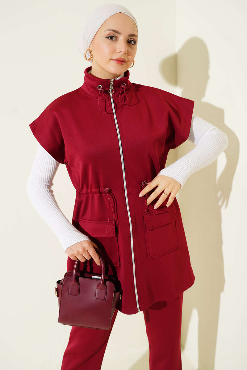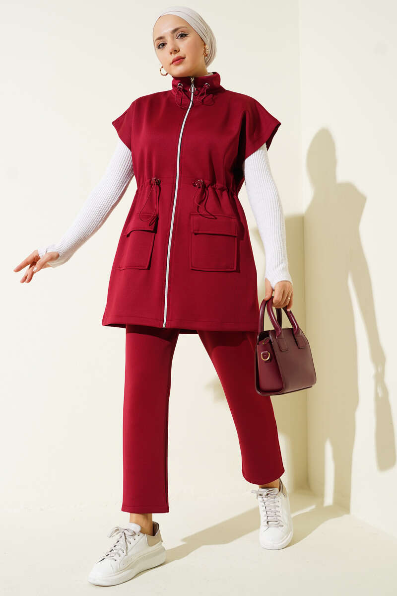 Hakim Yaka Pelerinli Loyşa İkili Takım Bordo