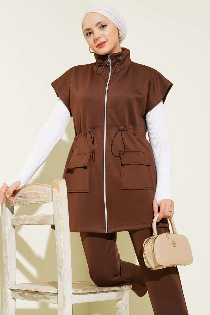 Scuba Bel Tünelli Yelekli İkili Takım Bej