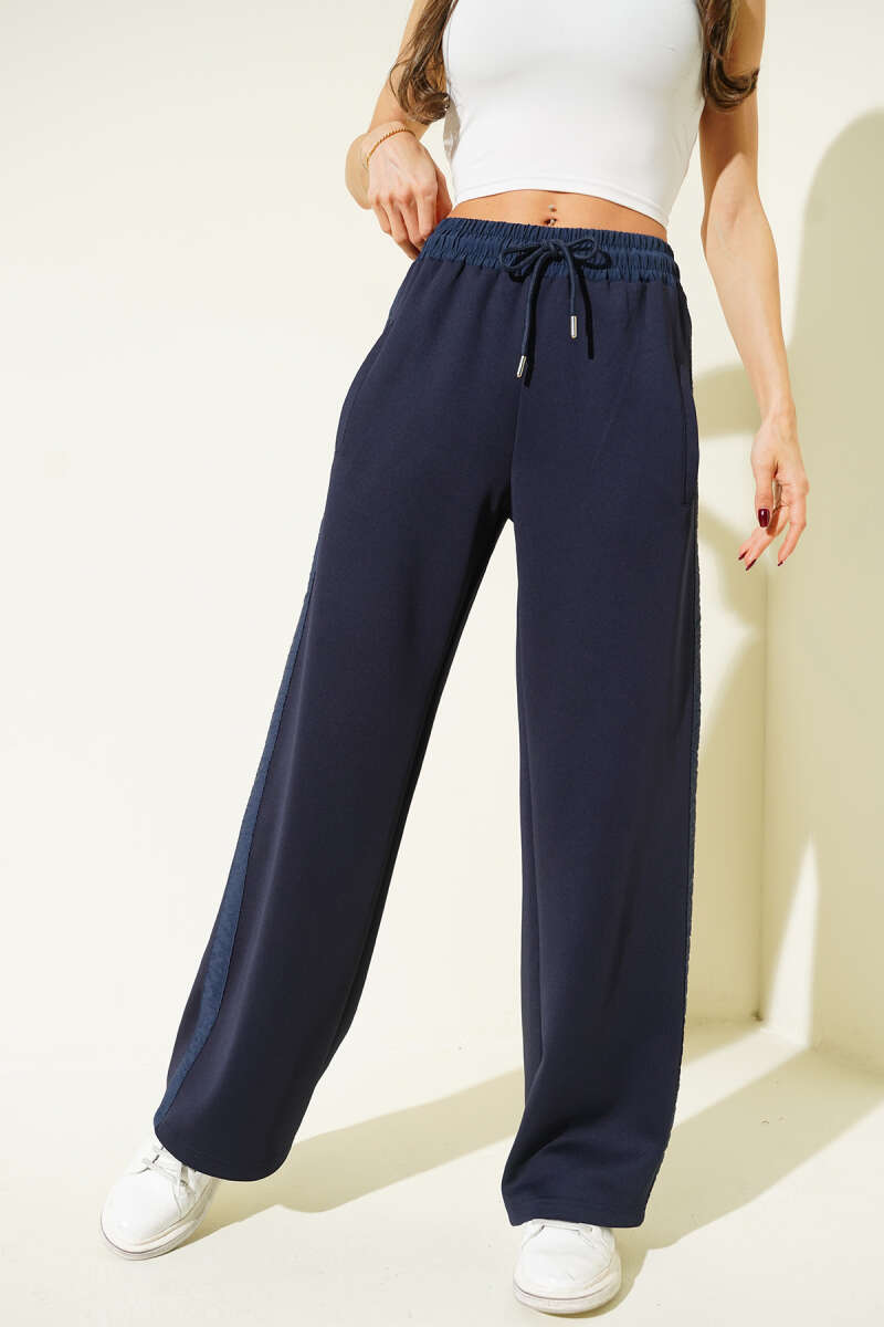 Yaka Bağcıklı Loyşa Sweatshirt İkili Takım Lacivert