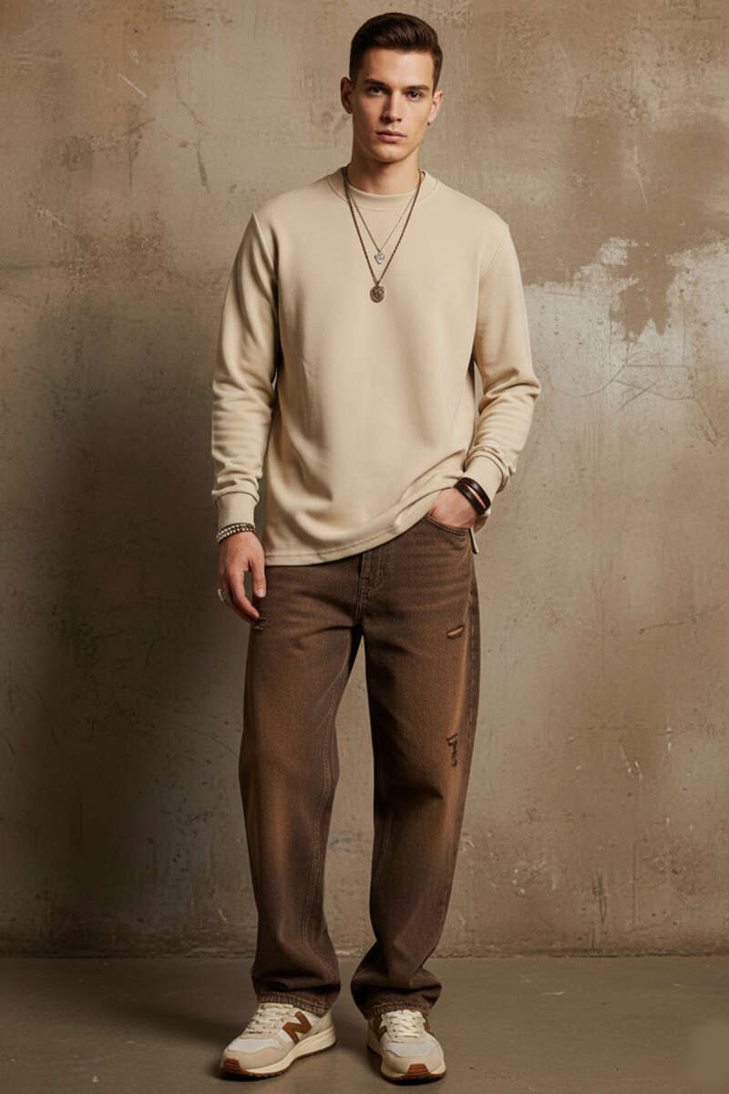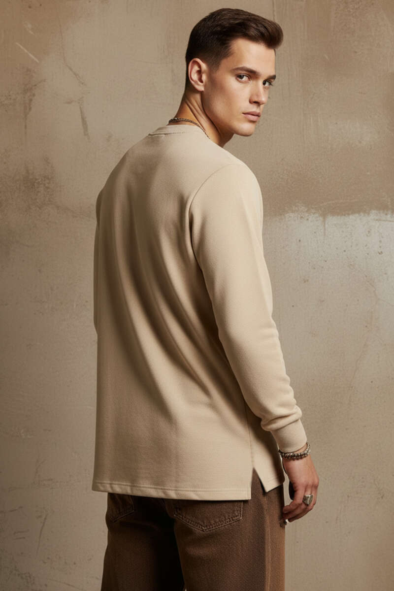 Gömlek Yaka Baskılı Erkek Sweatshirt Ekru