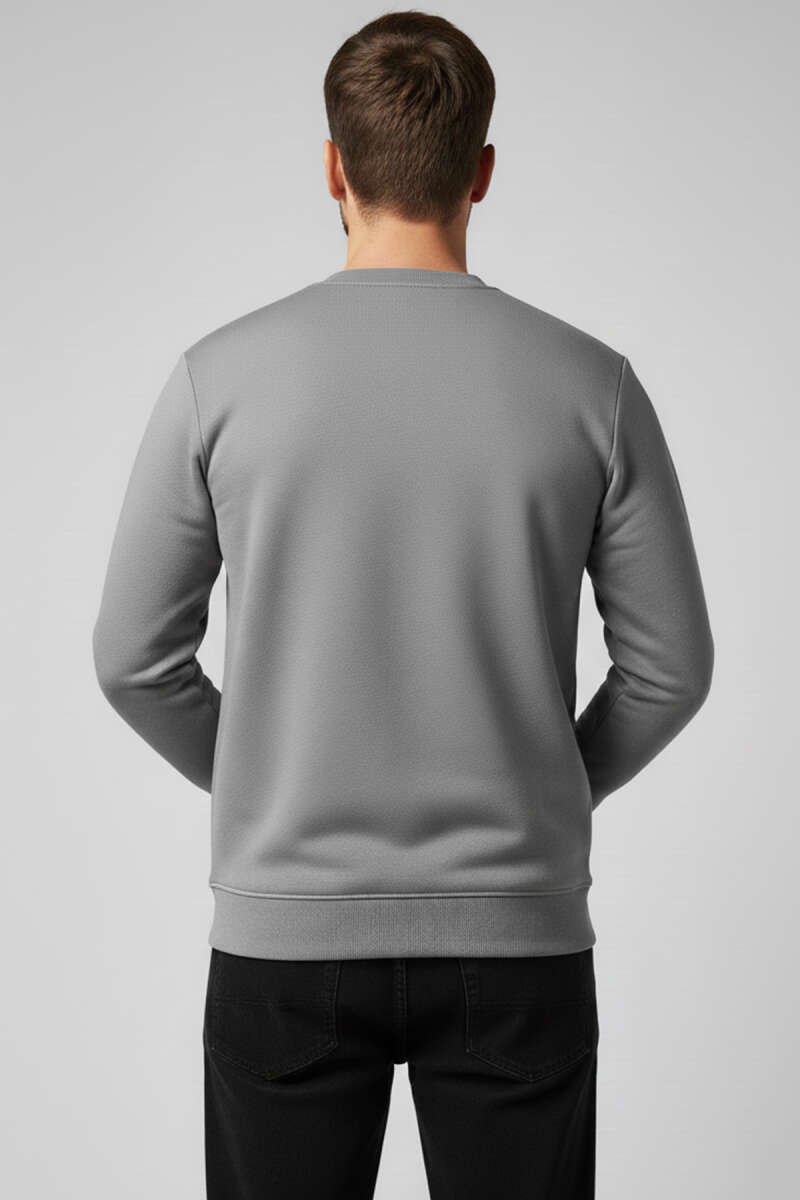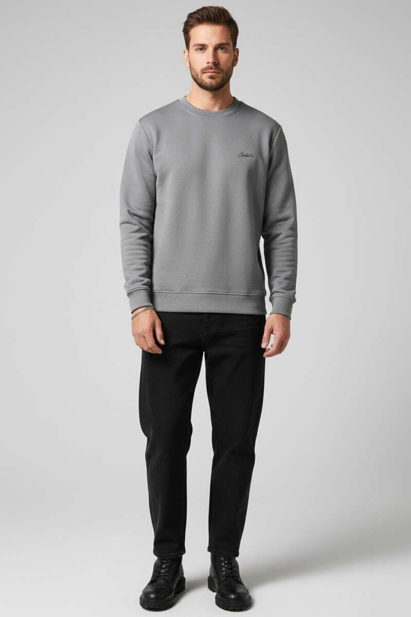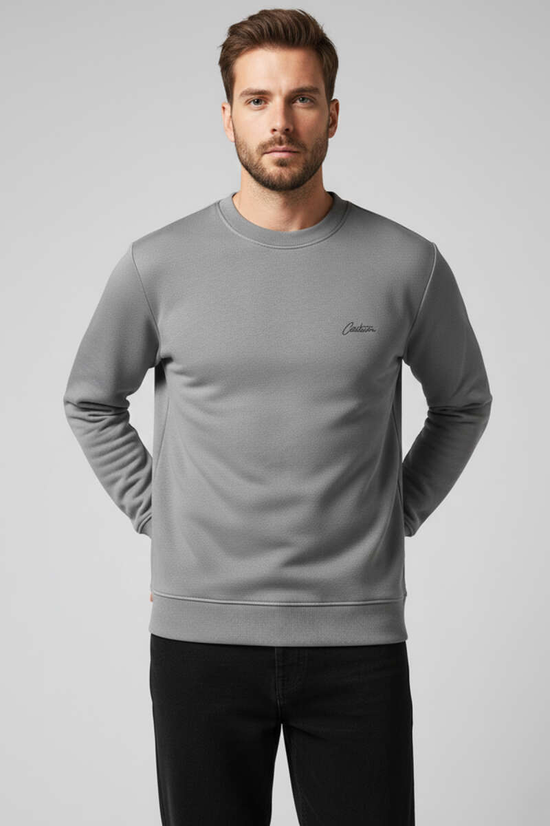Üç İplik Bisiklet Yaka Erkek Sweatshirt Gri