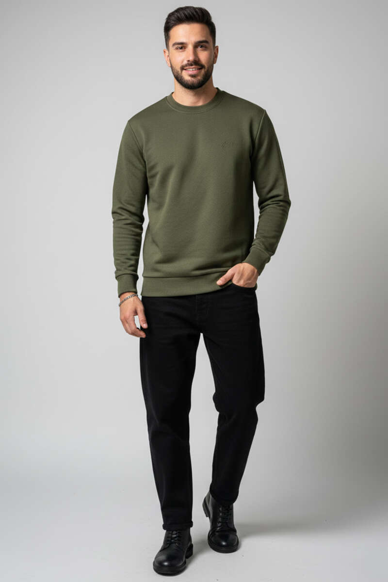 Üç İplik Bisiklet Yaka Erkek Sweatshirt Petrol