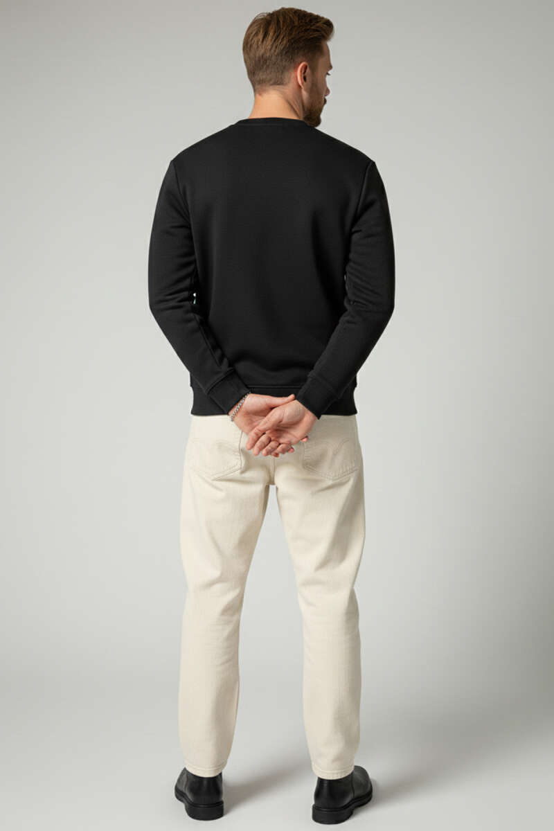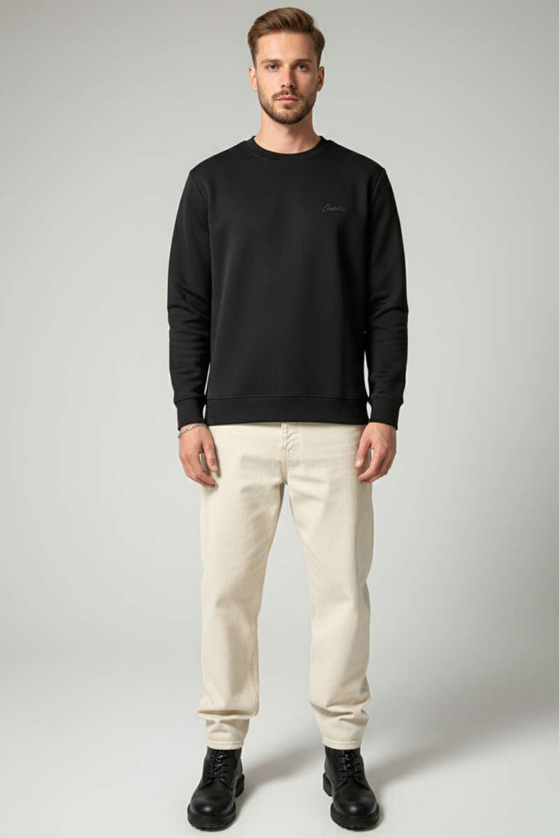 Üç İplik Bisiklet Yaka Erkek Sweatshirt Siyah