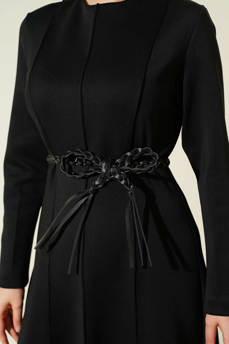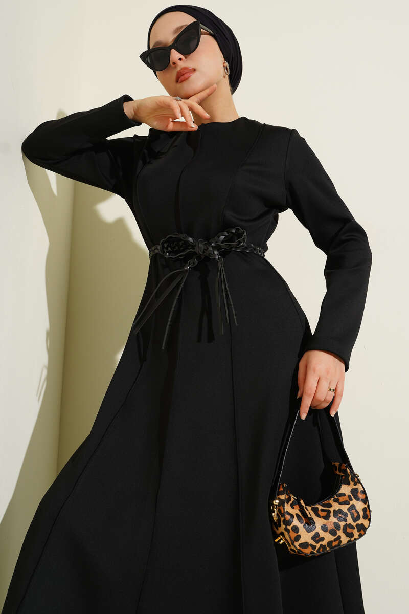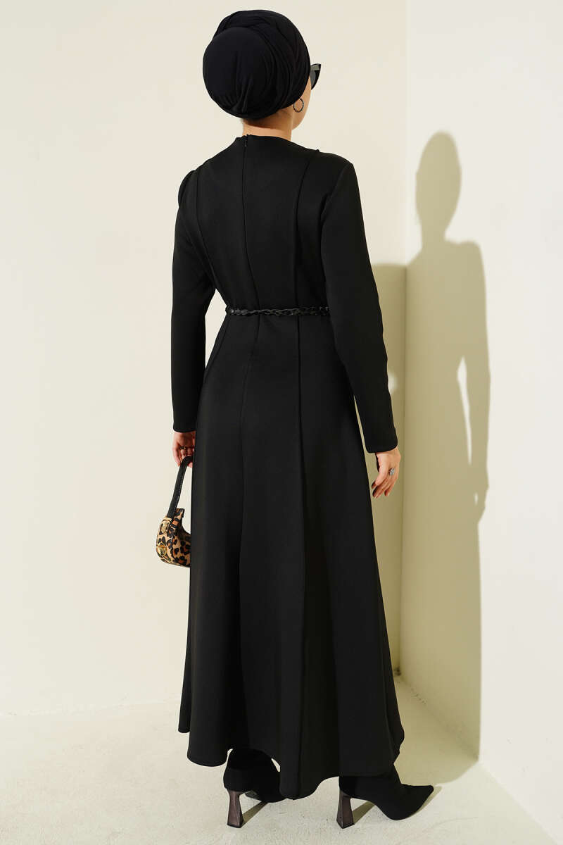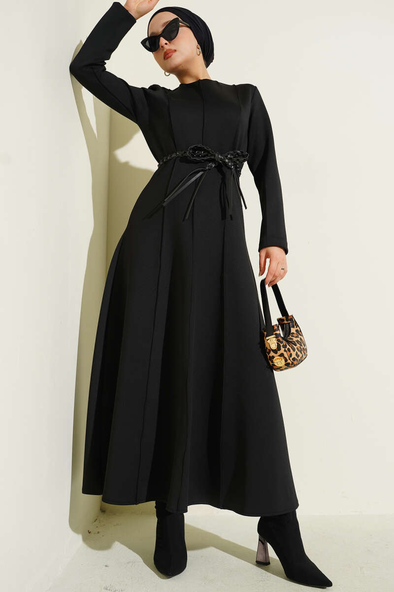 Yaka Ve Kol Ribanalı Elbise Haki Indıgo