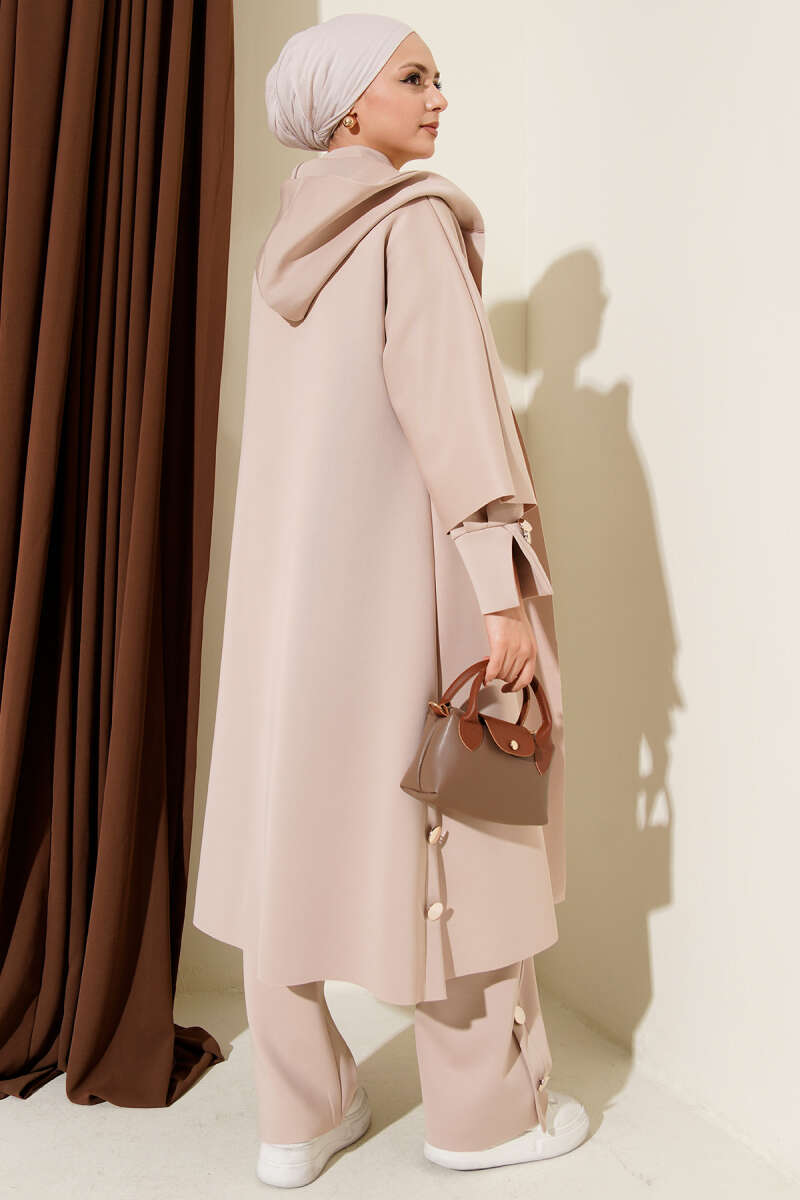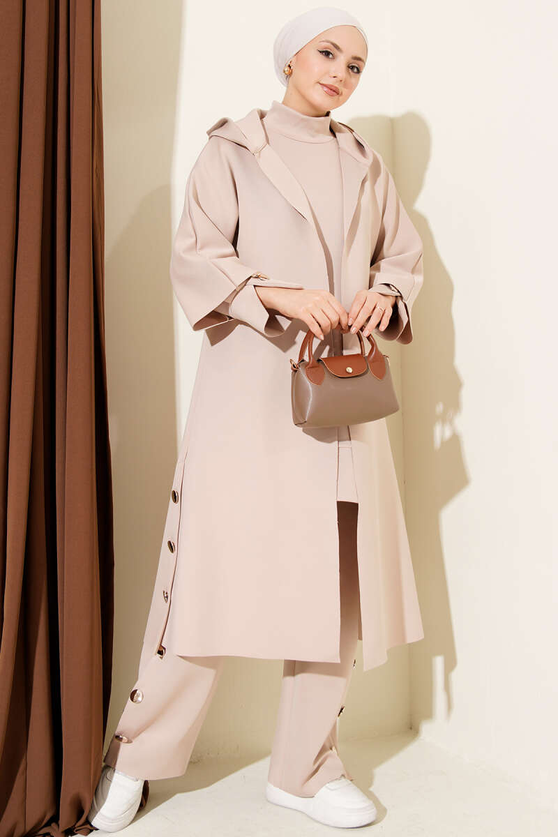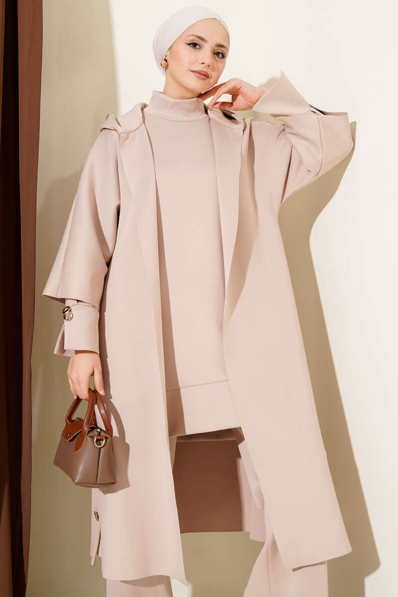 Scuba Uzun Hırkalı Üçlü Takım Bej