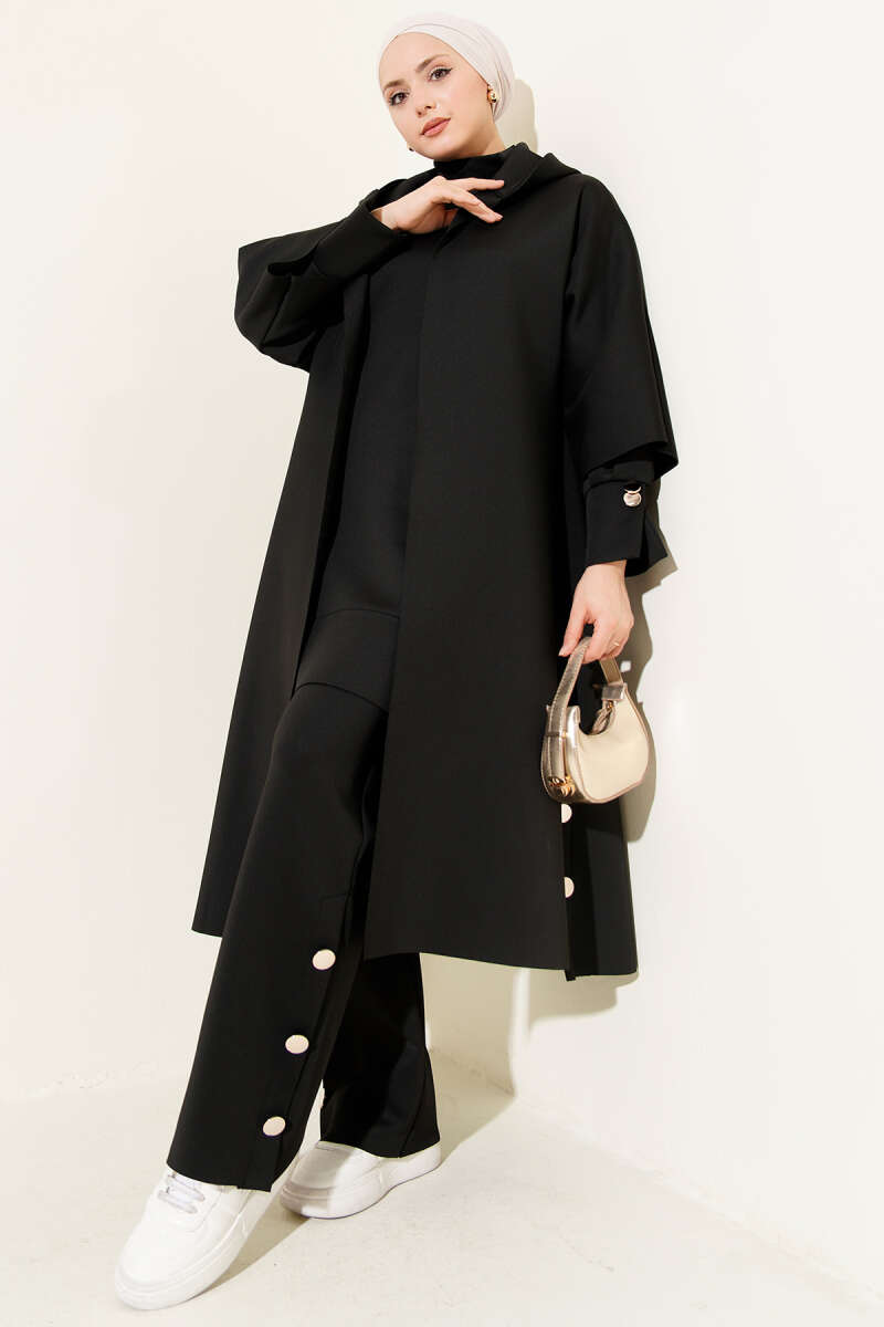 Scuba Uzun Hırkalı Üçlü Takım Siyah