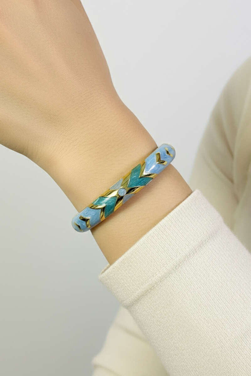 Ebruli Kabartmalı Kelepçe Bilezik Yeşil
