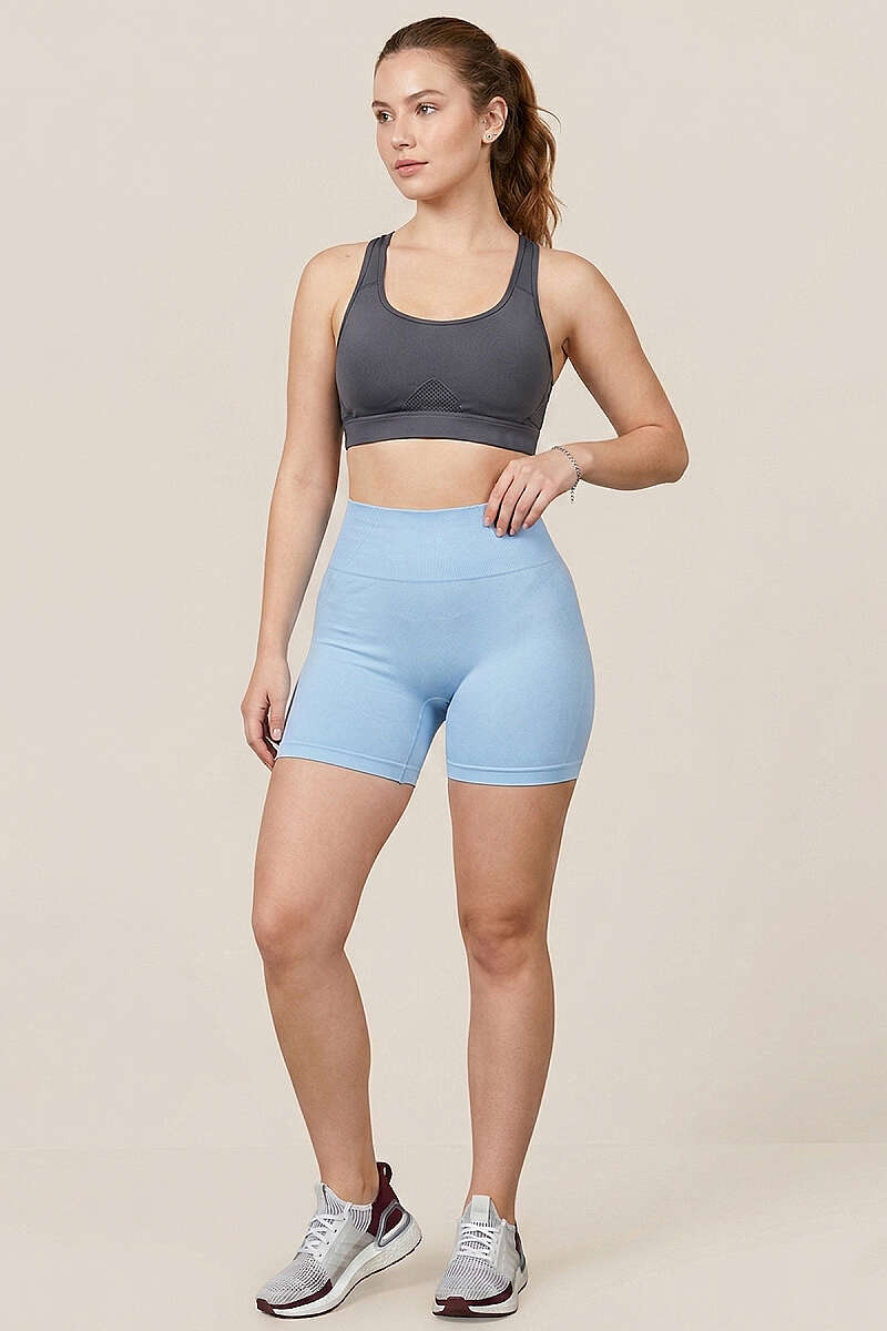 Şekillendiricili Kısa Spor Tayt Buz Mavisi